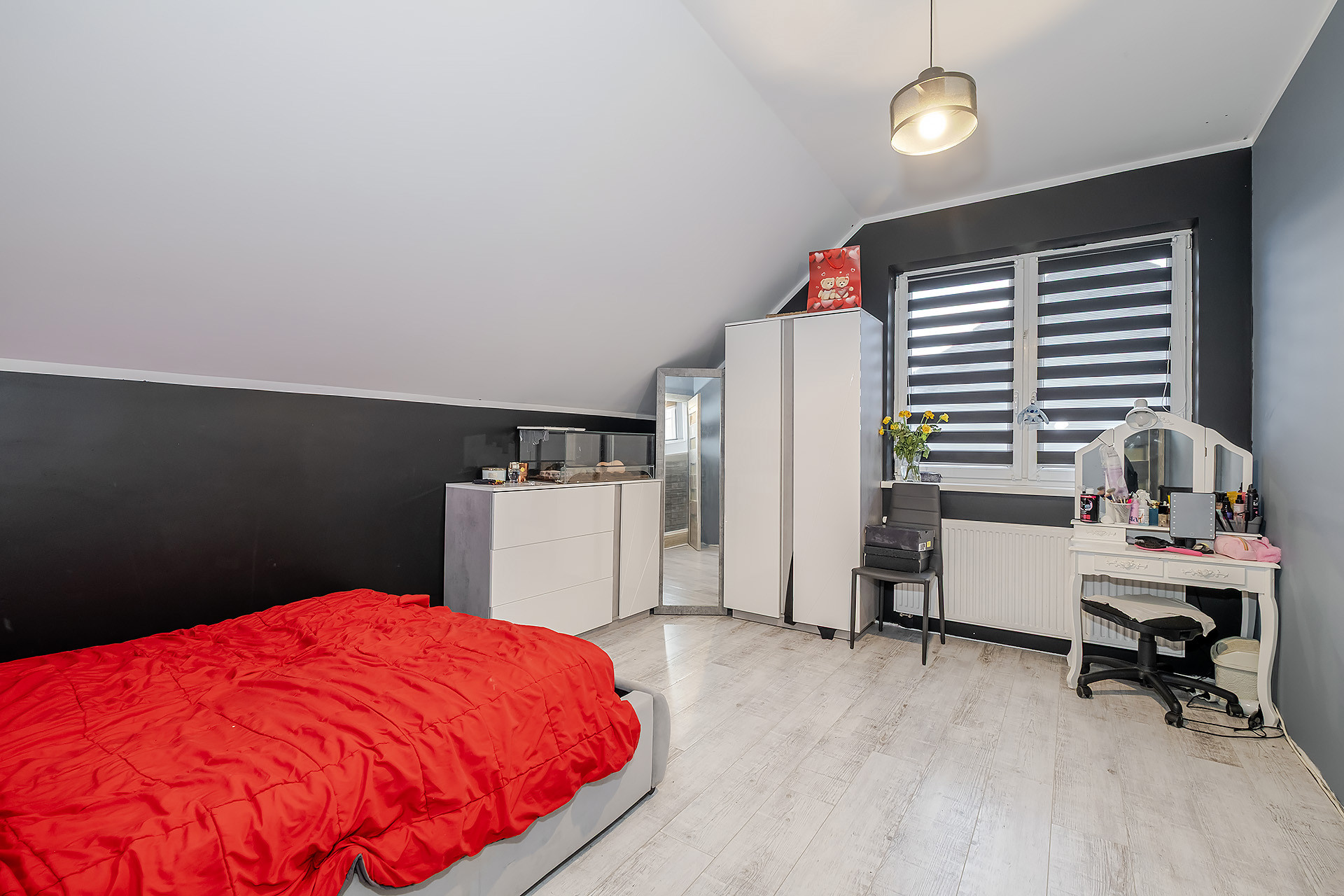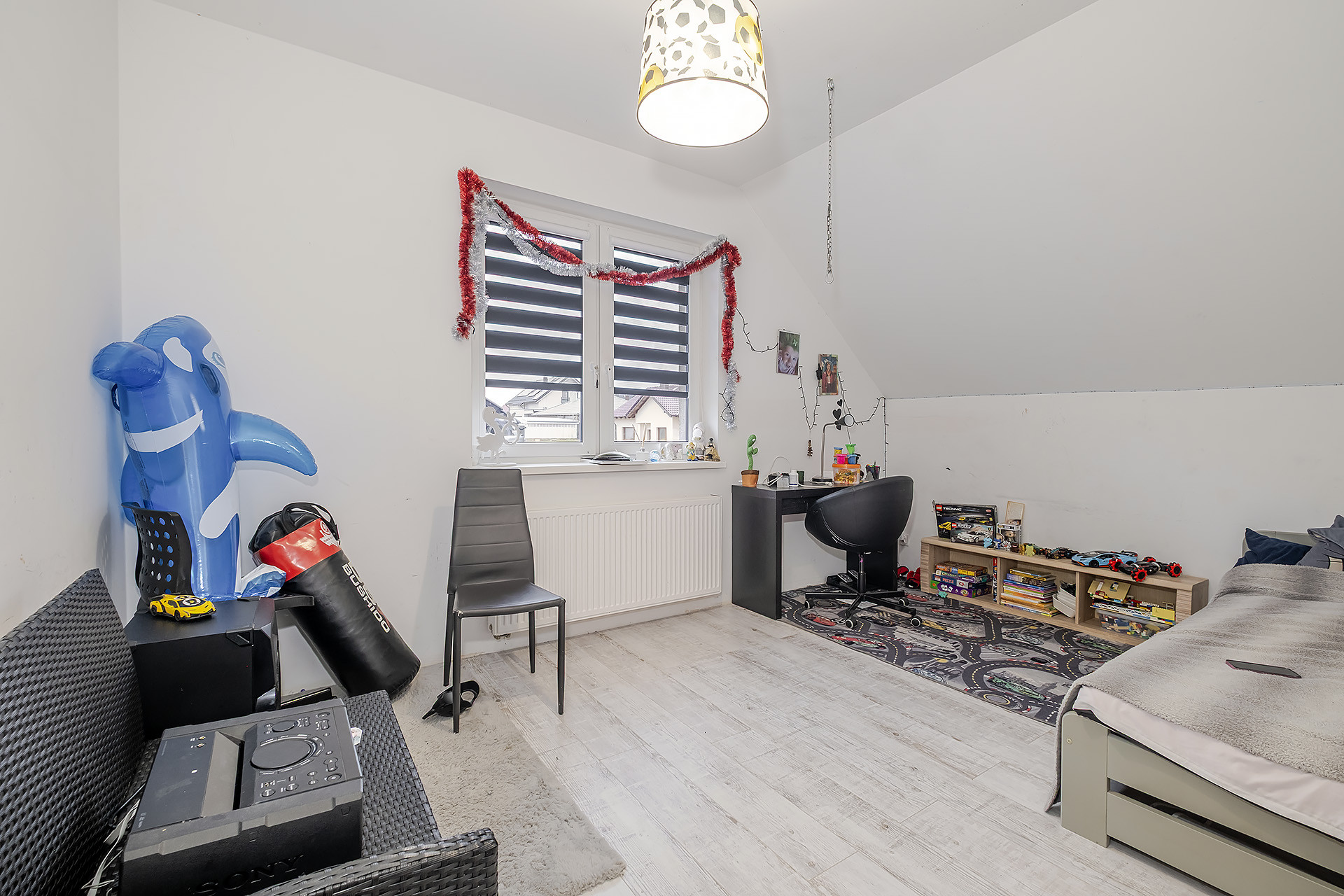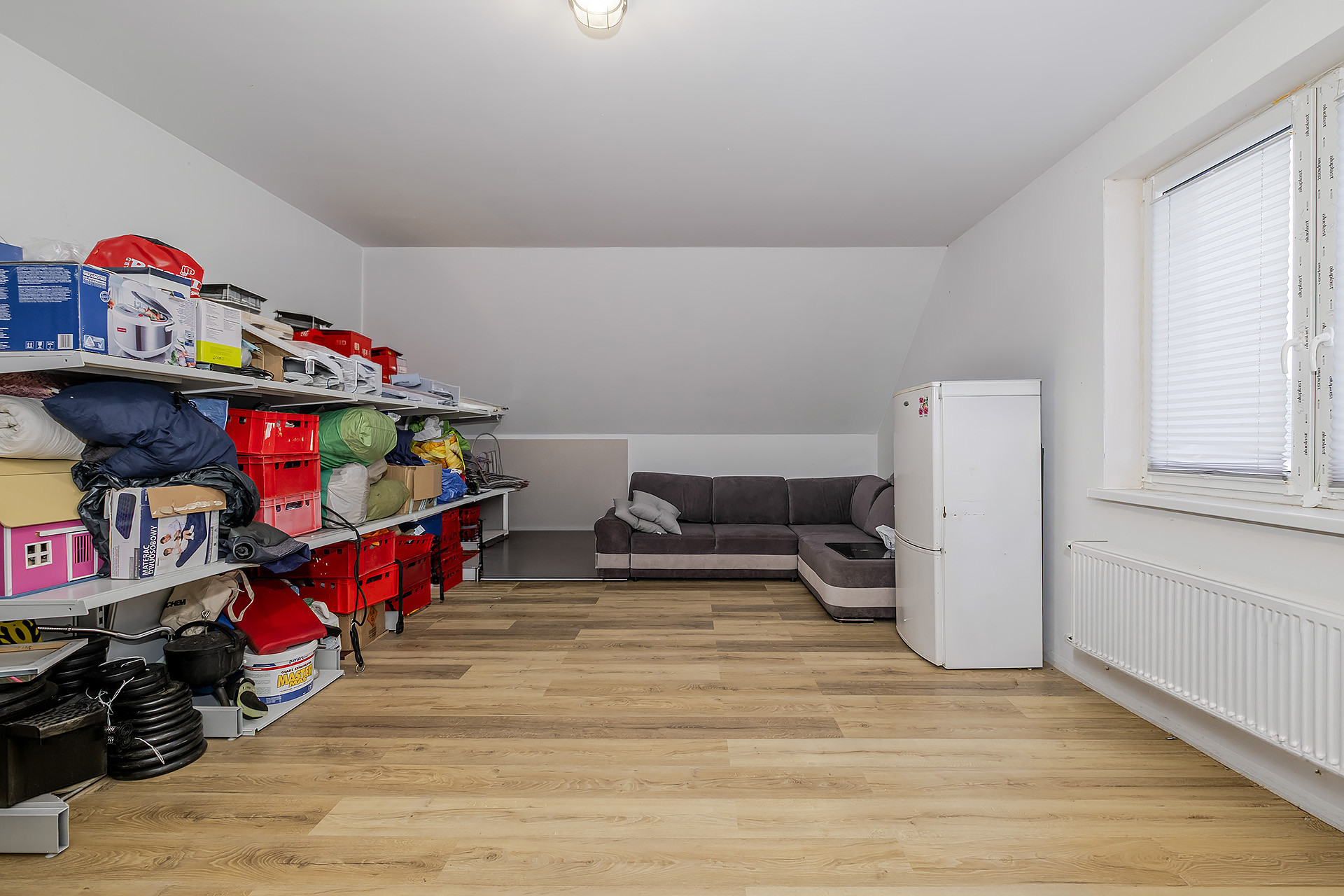 Bardzo duży pokój na półpiętrze nad garażem (zdjęcie przedstawia tylko jego połowę),