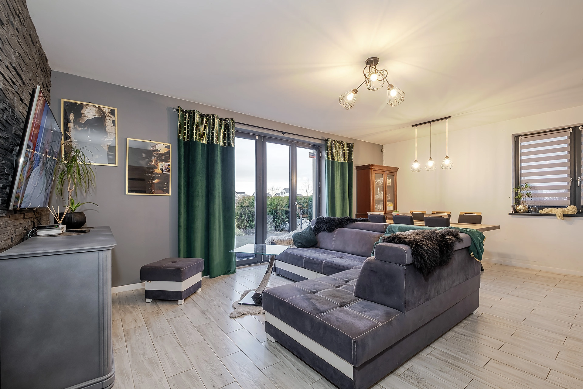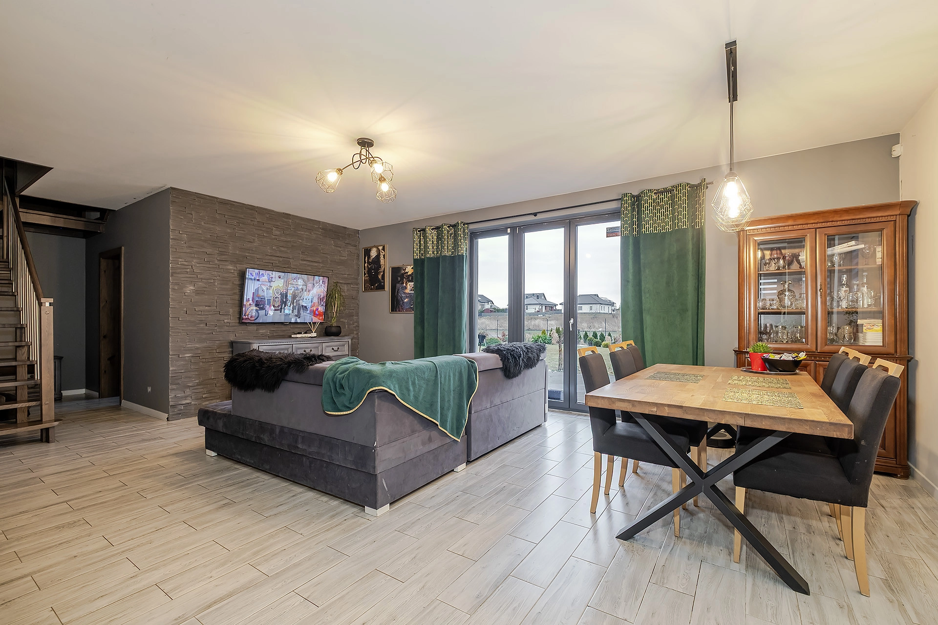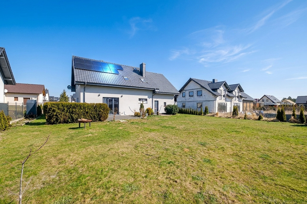 Ulica przy której znajduję się dom to spokojna zabudowa jednorodzinna – brak ruchu, cisza i poczucie prywatności. Wokół tereny zielone i otwarta przestrzeń, które dają realny komfort życia.