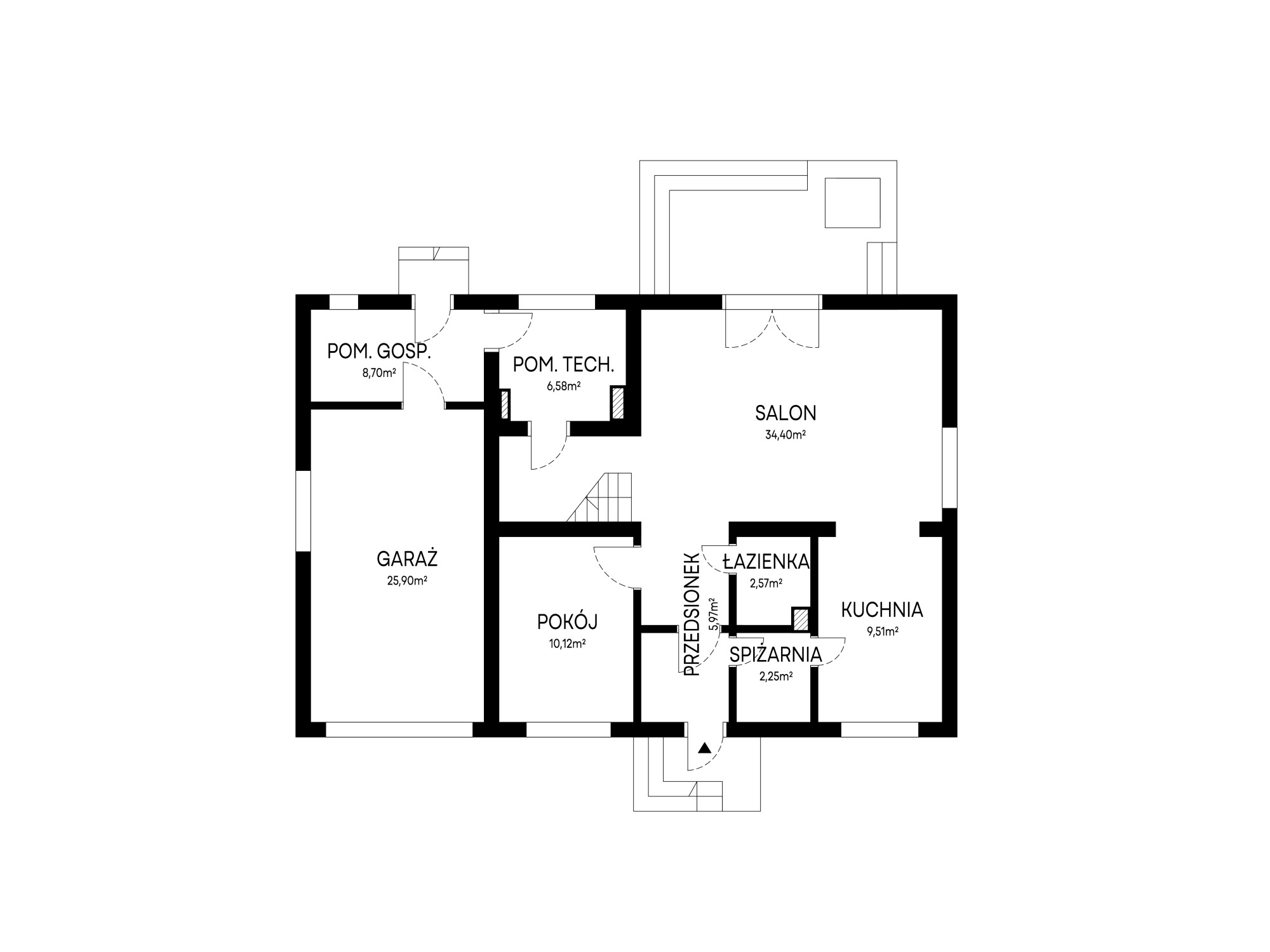 Pokój na dole | Garaż w bryle | Fotowoltaika