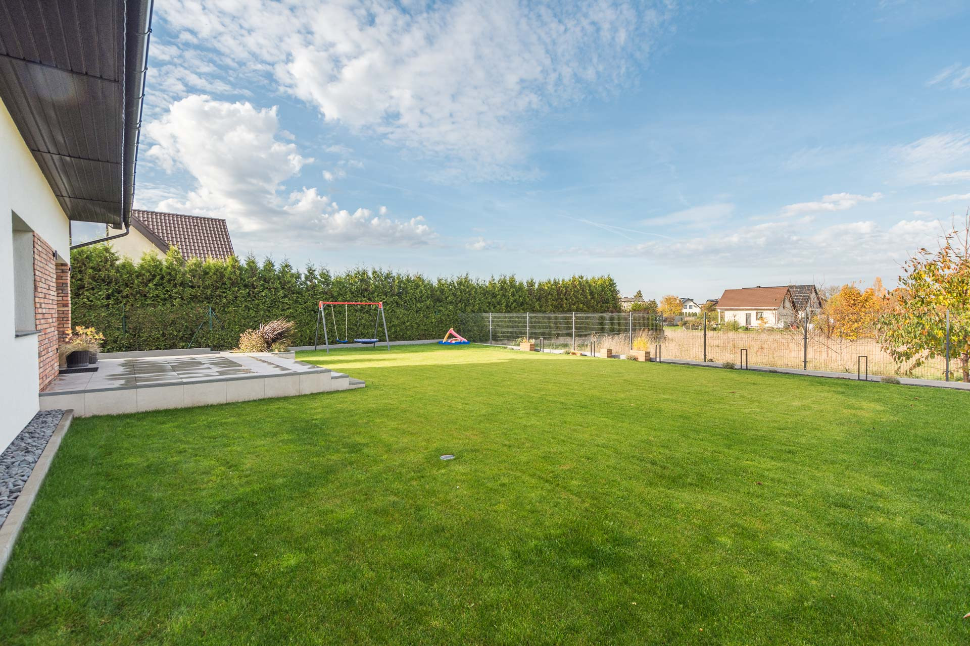 DZIAŁKA: wolnostojący dom posadowiony jest na prostokątnej działce o powierzchni 612 m2. Ogród ładnie zaprojektowany, oświetlony i zagospodarowany: trawnik, iglaki, byliny, placyk zabaw. W ogrodzie automatyczny system podlewania oparty na firmie Gardena. Na teren posesji prowadzi automatycznie otwierana brama. Na działce postawiony dodatkowo niezależny garaż na 1 samochód, również z bramą sterowaną na pilota.