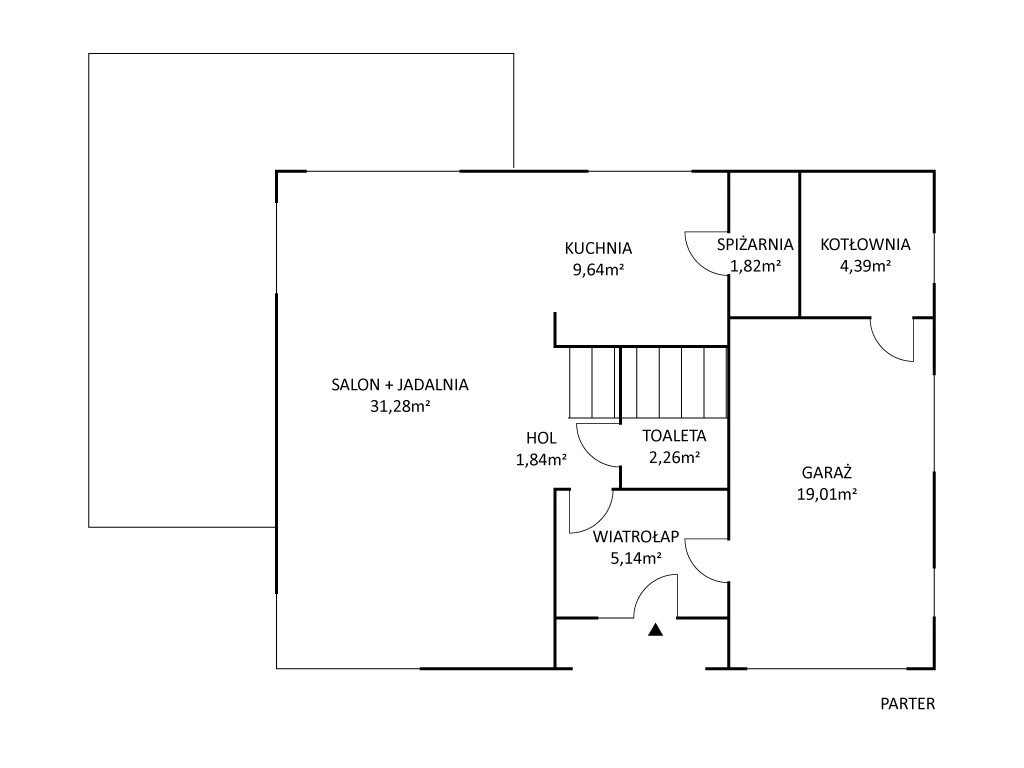 – spiżarnia, do której jest dostęp z kuchni o pow. ok. 2 m2,