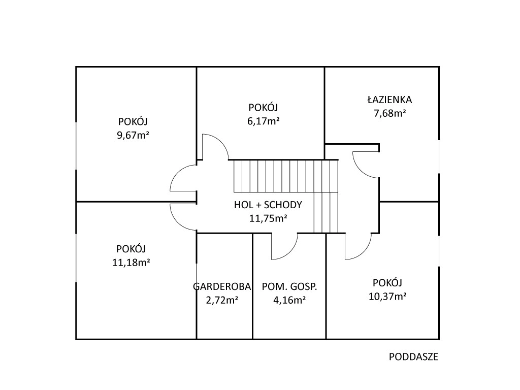 – pomieszczenie gospodarcze, które może różną funkcję (np. suszarnia, pralnia, gabinet, garderoba) o pow. ok. 4 m2,
