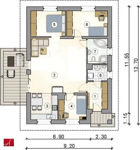 Dom parterowy o powierzchni użytkowej 87,45 m², na działce o pow. ok. 425m2