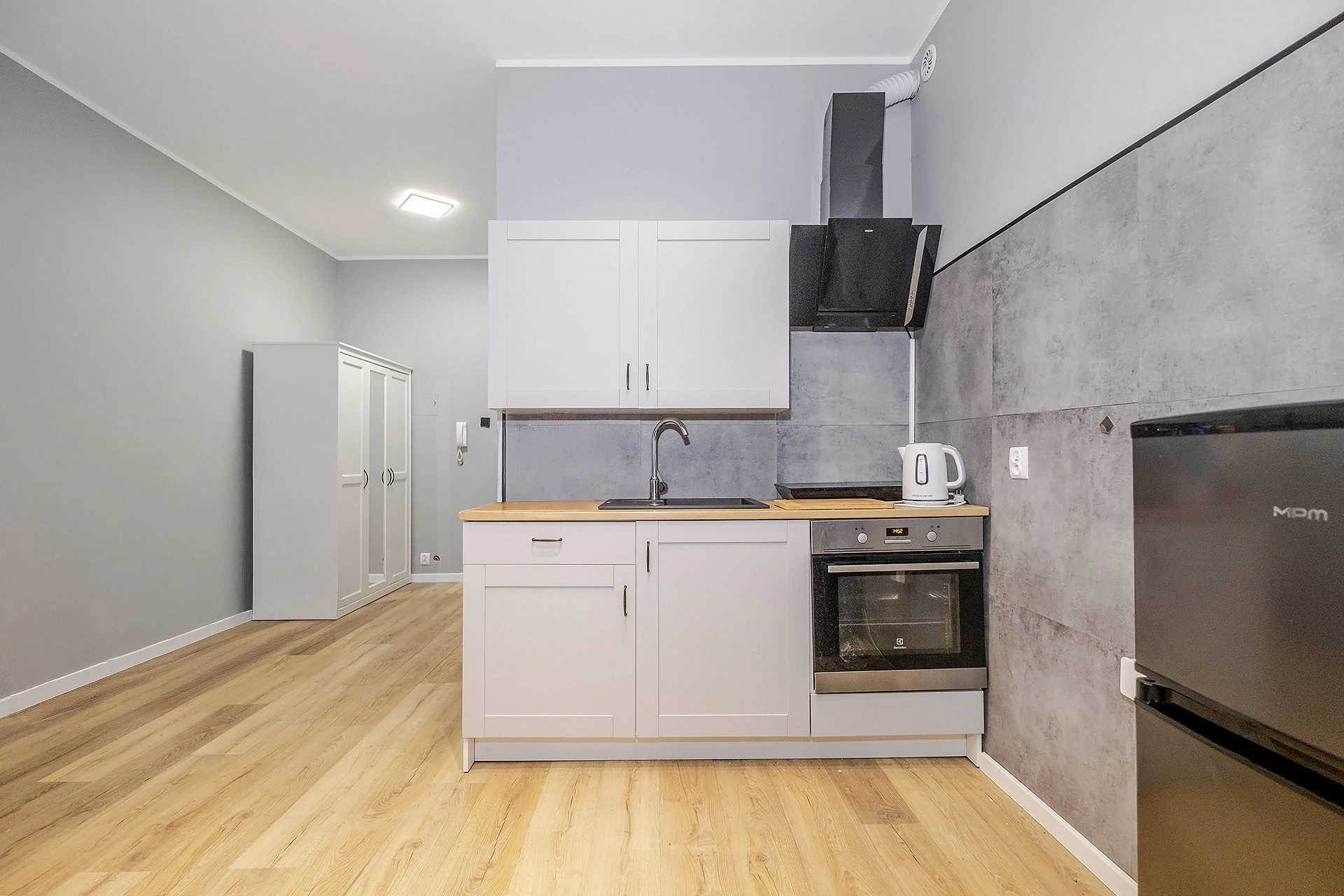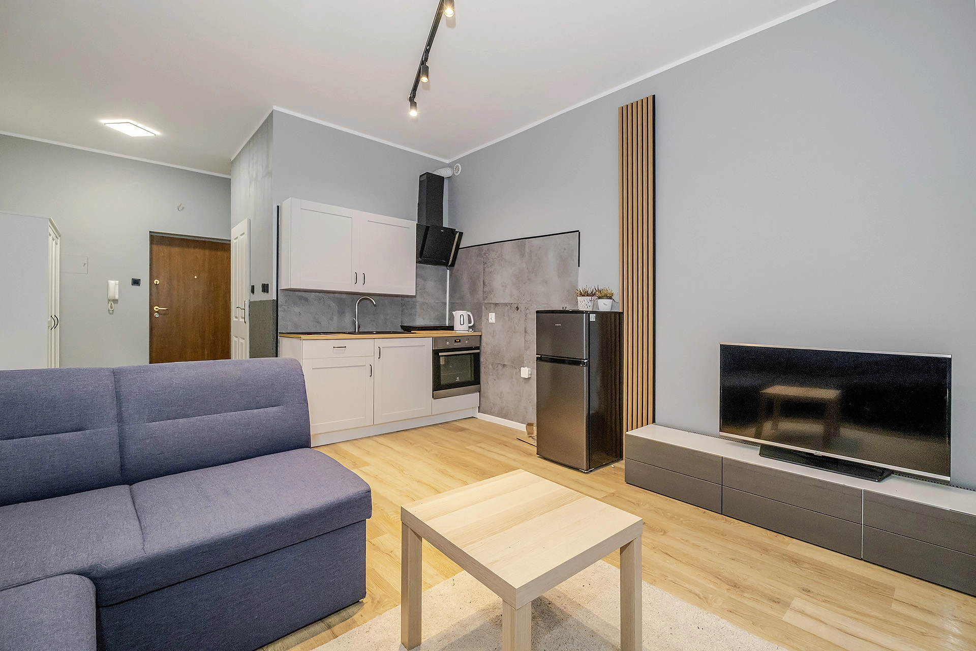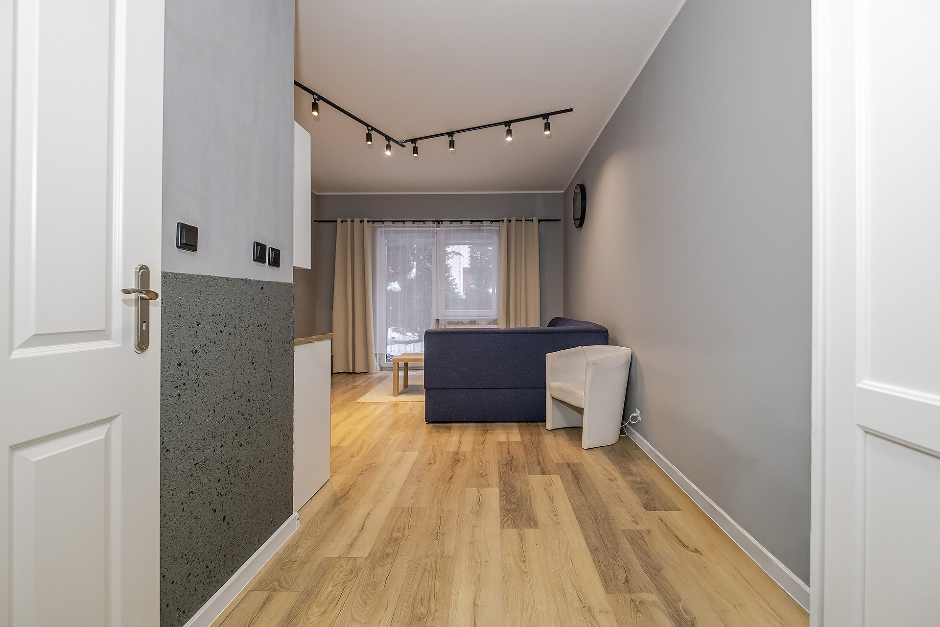 Nowy jasny asortyment aneksu kuchennego połączony z dużym jasnym salonem z wyjściem na ogródek. Mieszkanie posiada osobną zamykaną toaletę oraz przestronny, funkcjonalny korytarz.