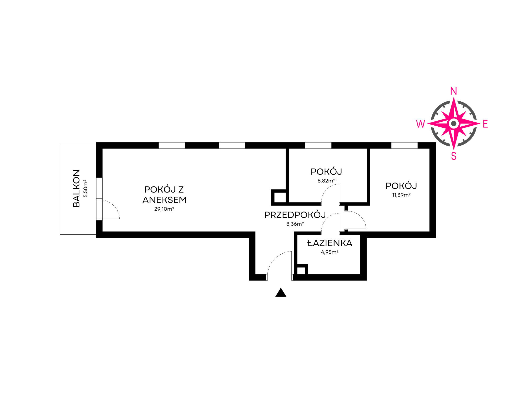 – salon z aneksem kuchennym (29 m²), z salonu wyjście na balkon (5,50m2)