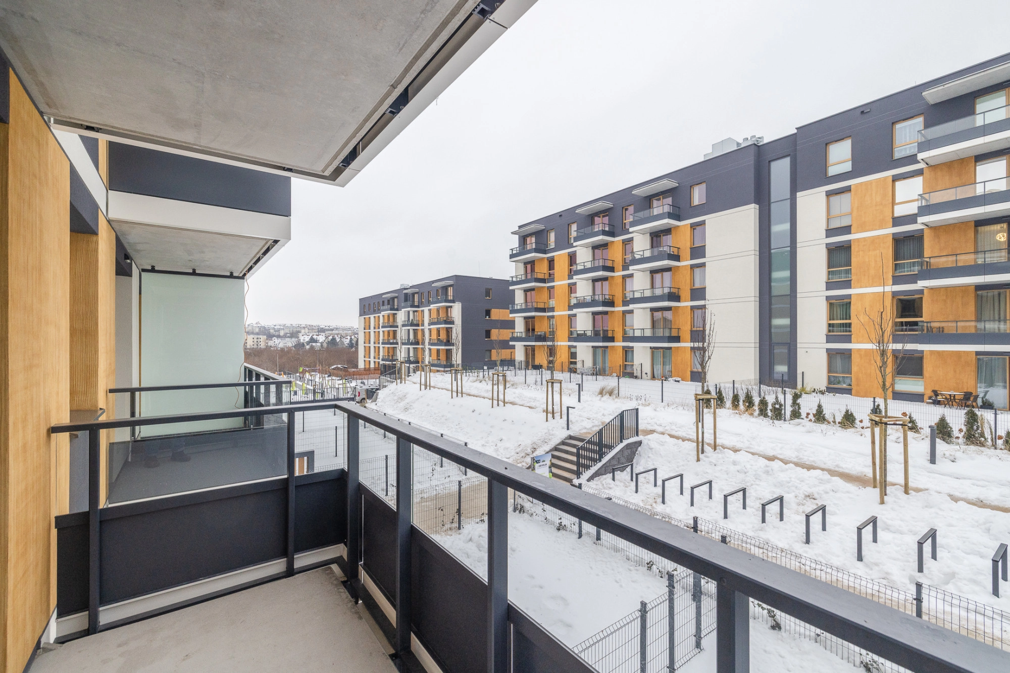 Na terenie osiedla powstały ogrody deszczowe-specjalne tereny, obsadzone ozdobną roślinnością, a przestrzenie wspólne urozmaicają alejki spacerowe, atrakcyjne place zabaw, plenerowa siłownia i zróżnicowane elementy małej architektury.