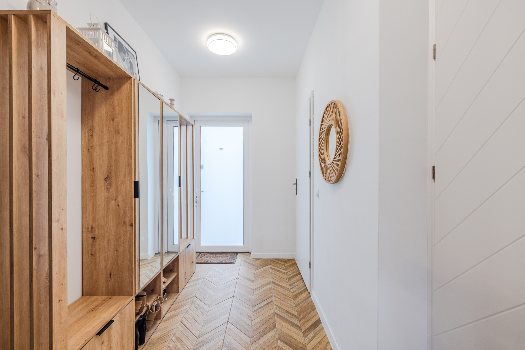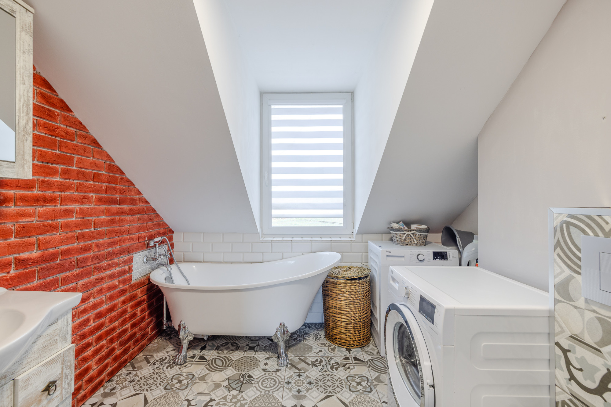 – Pomieszczenie gospodarcze z przyłączami do pralki oraz suszarki.