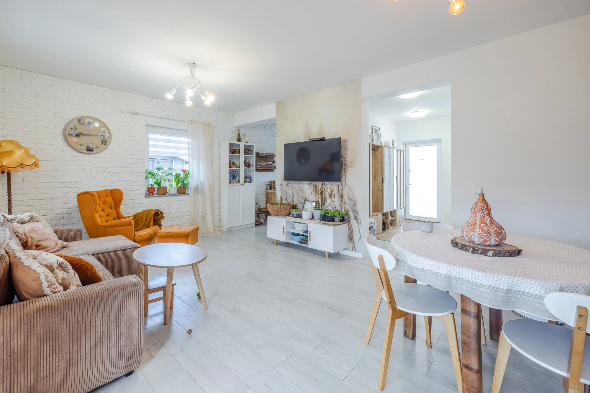– Salon z aneksem kuchennym oraz wyjściem na przestronny ogród oraz taras.