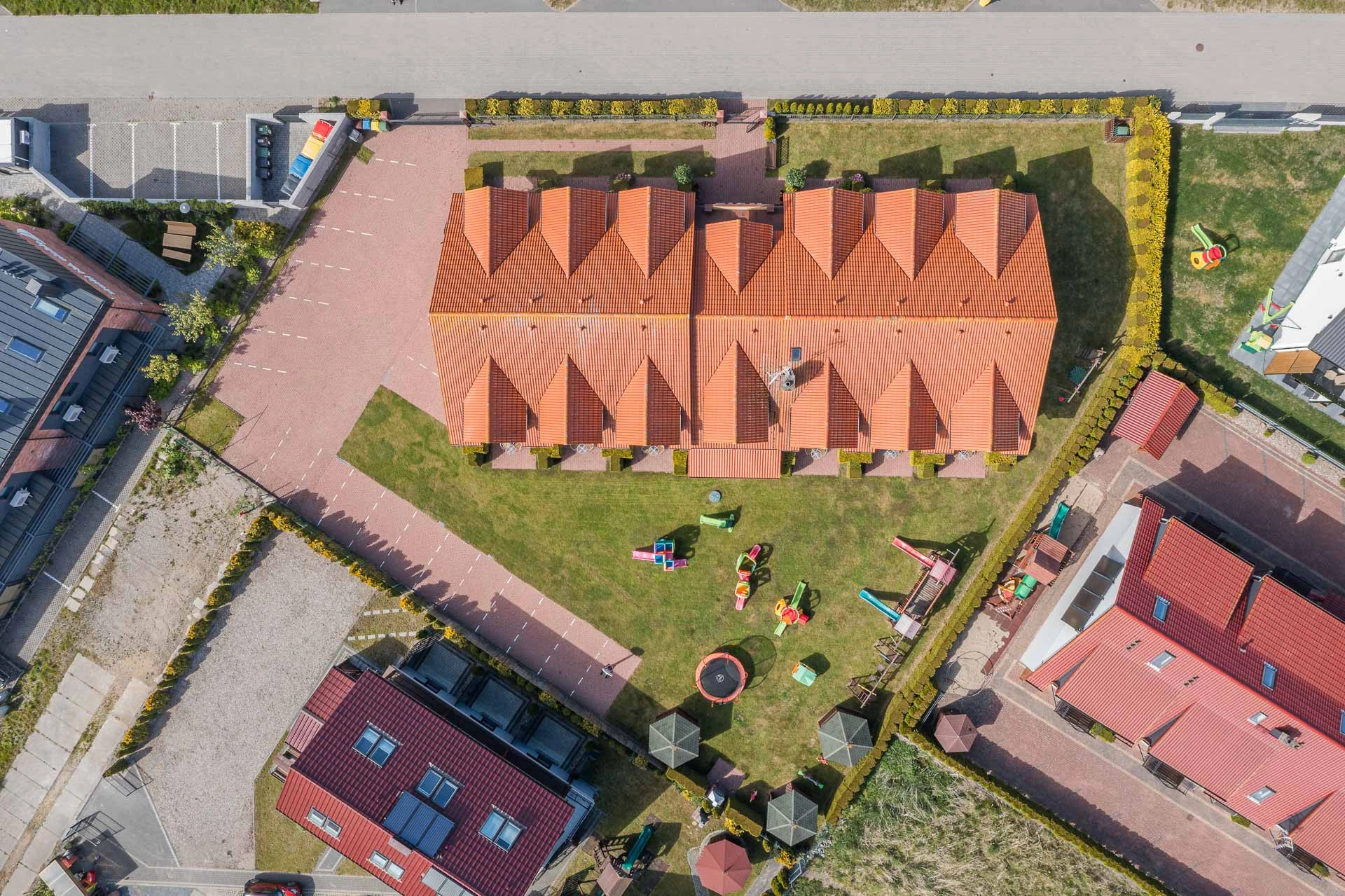 ✔ Pokoje na parterze – każdy posiada prywatny taras z meblami ogrodowymi,