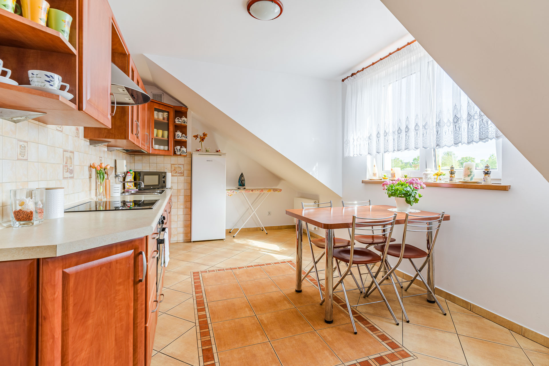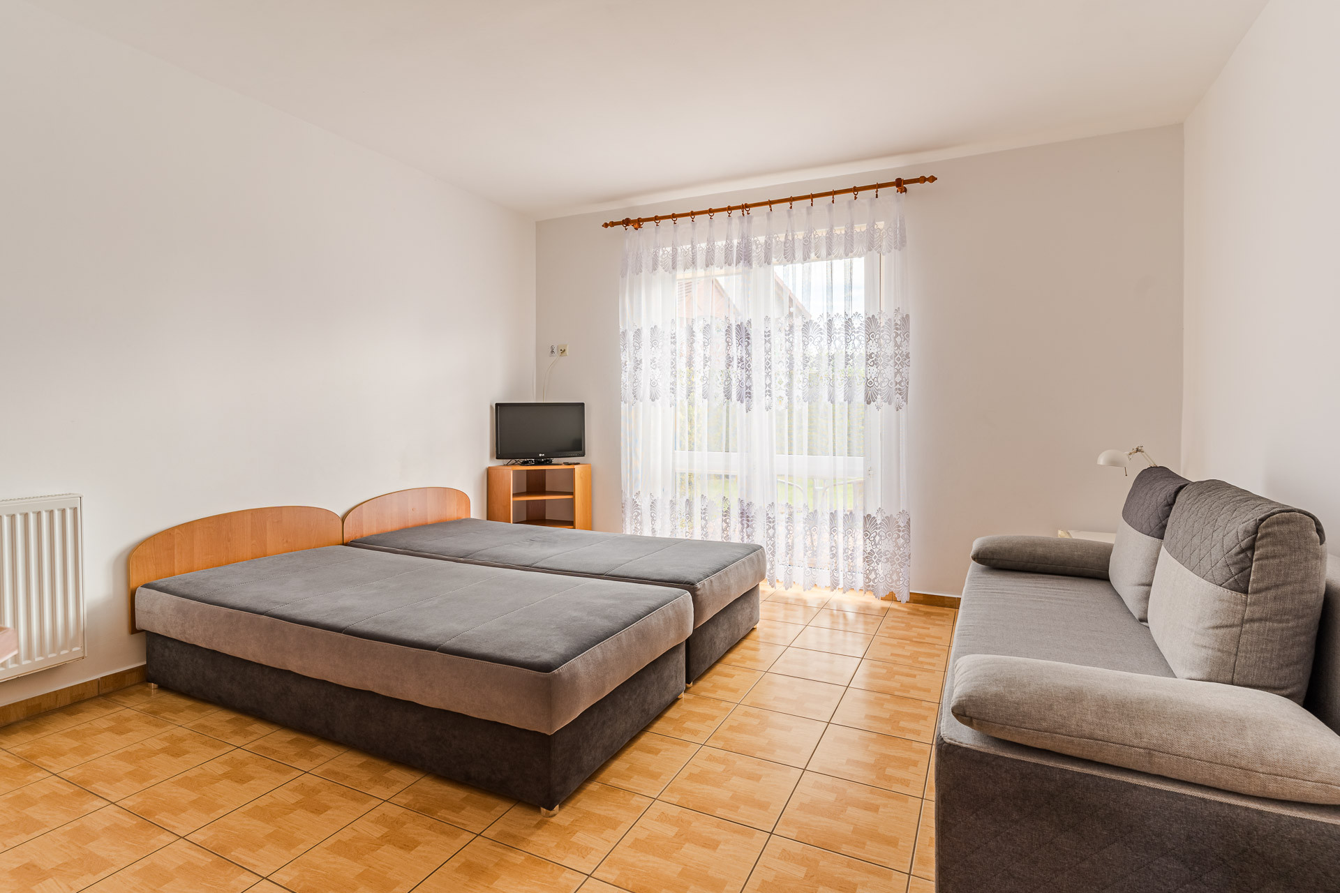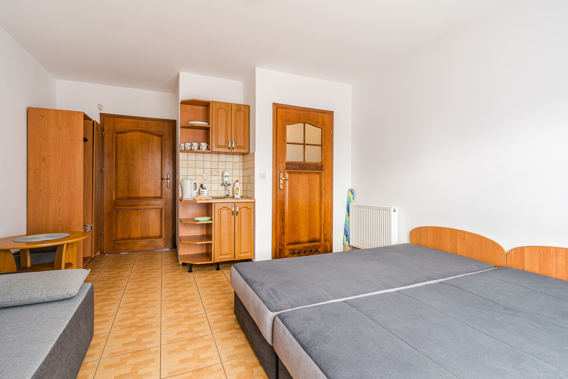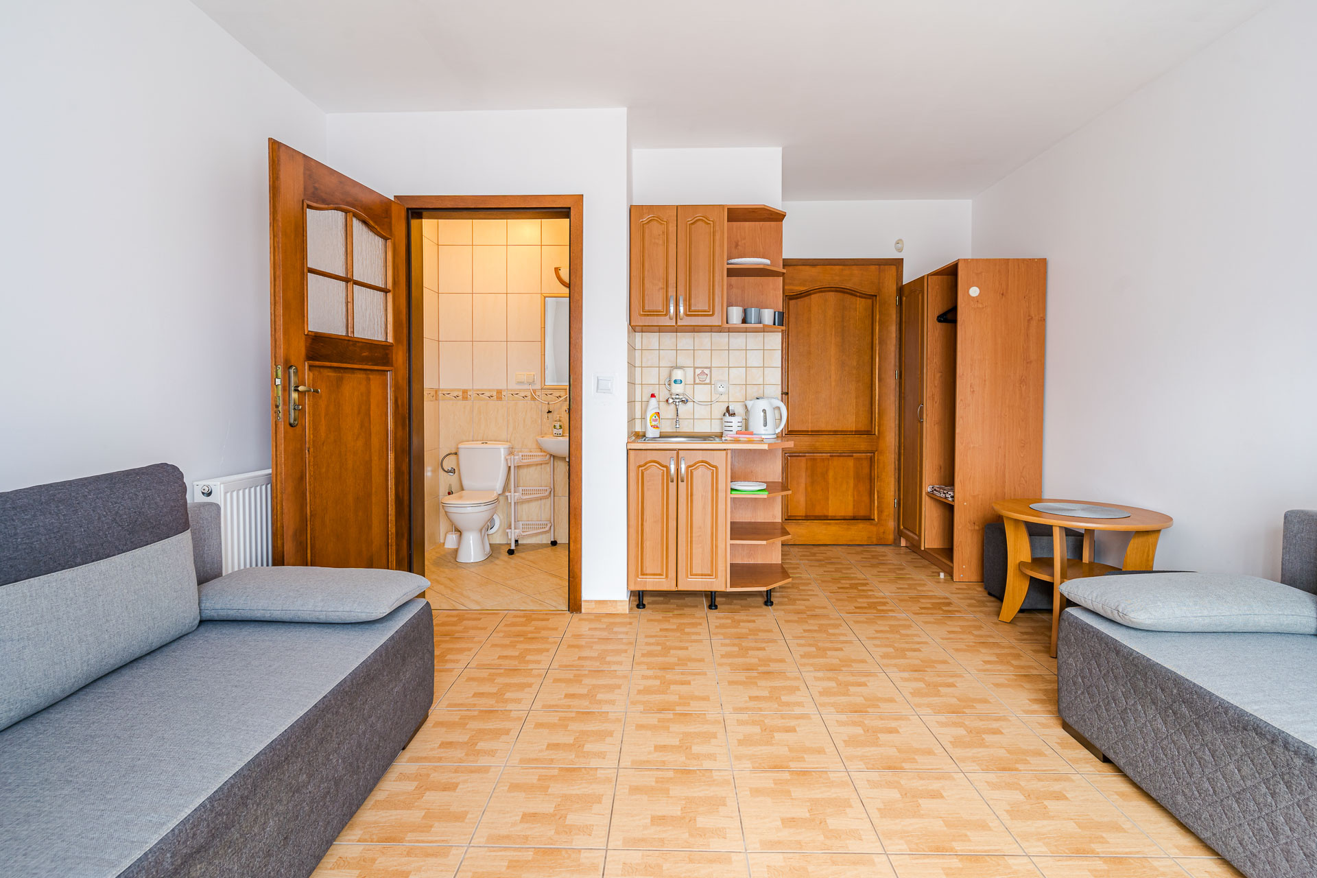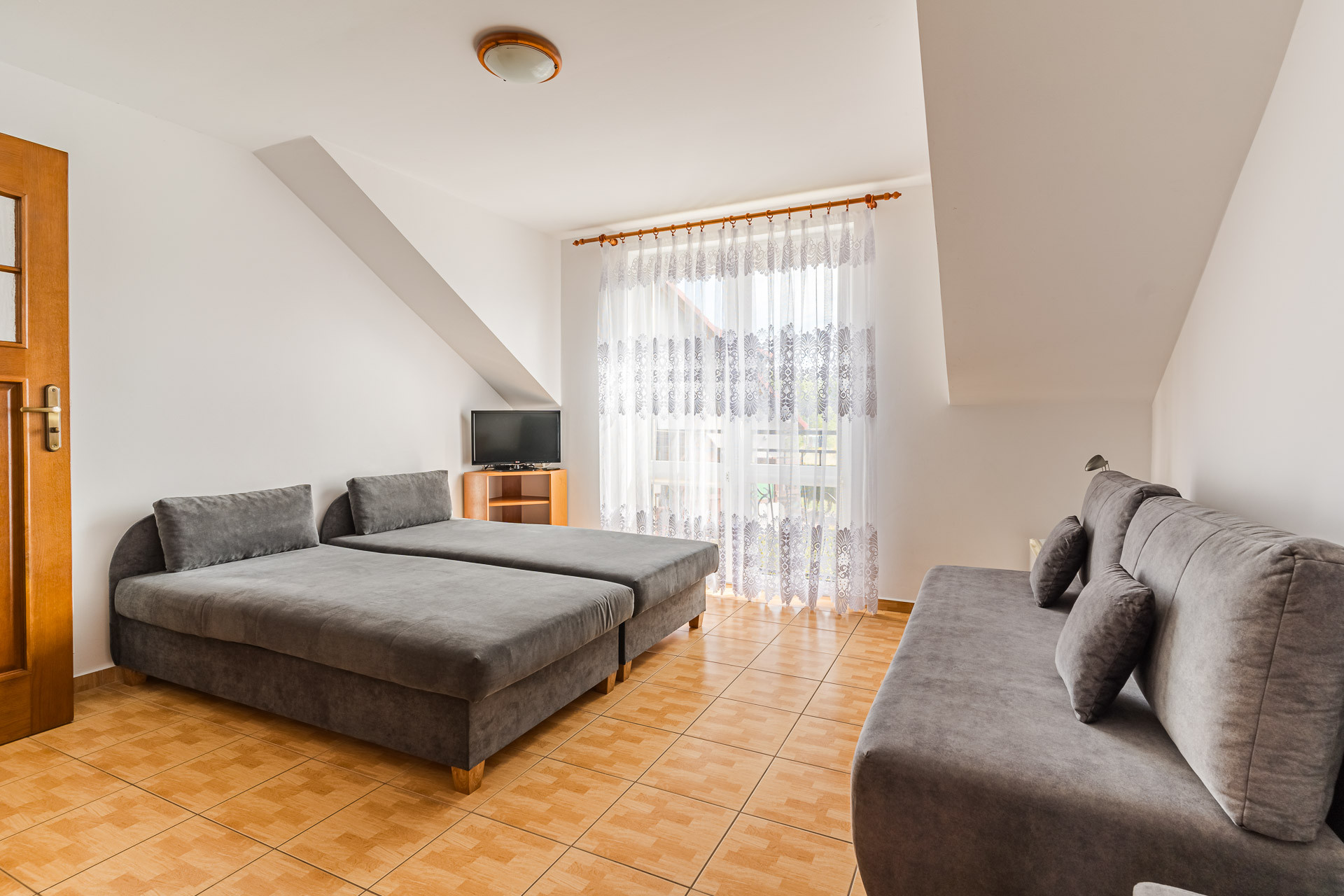 Pensjonat oferuje 25 komfortowych pokoi czteroosobowych, każdy o powierzchni ok. 20 m², z pełnym wyposażeniem:
