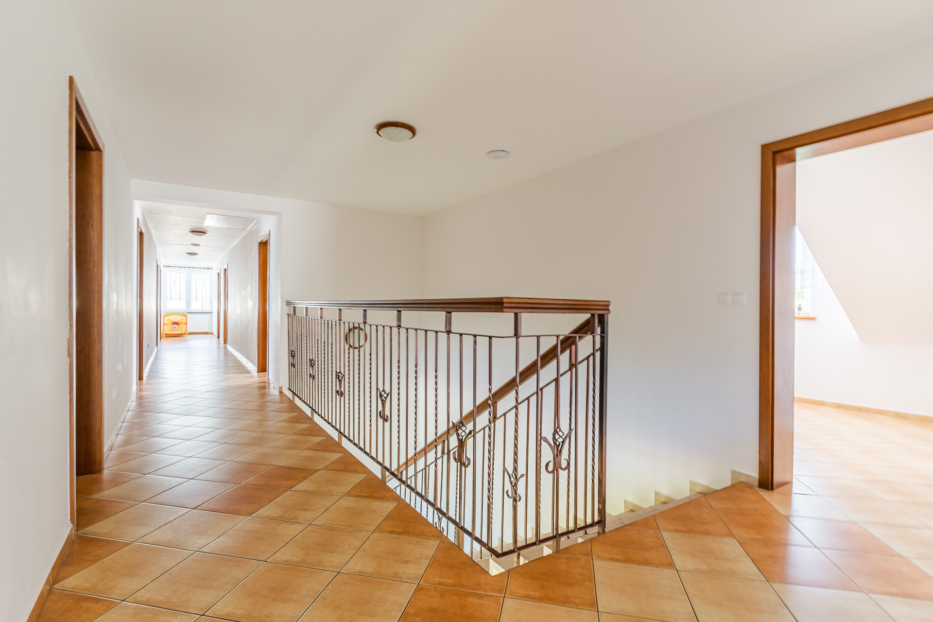 ✔ Pokoje na piętrze – duże okna balkonowe, jeden pokój posiada balkon z zabudową zapewniającą prywatność.