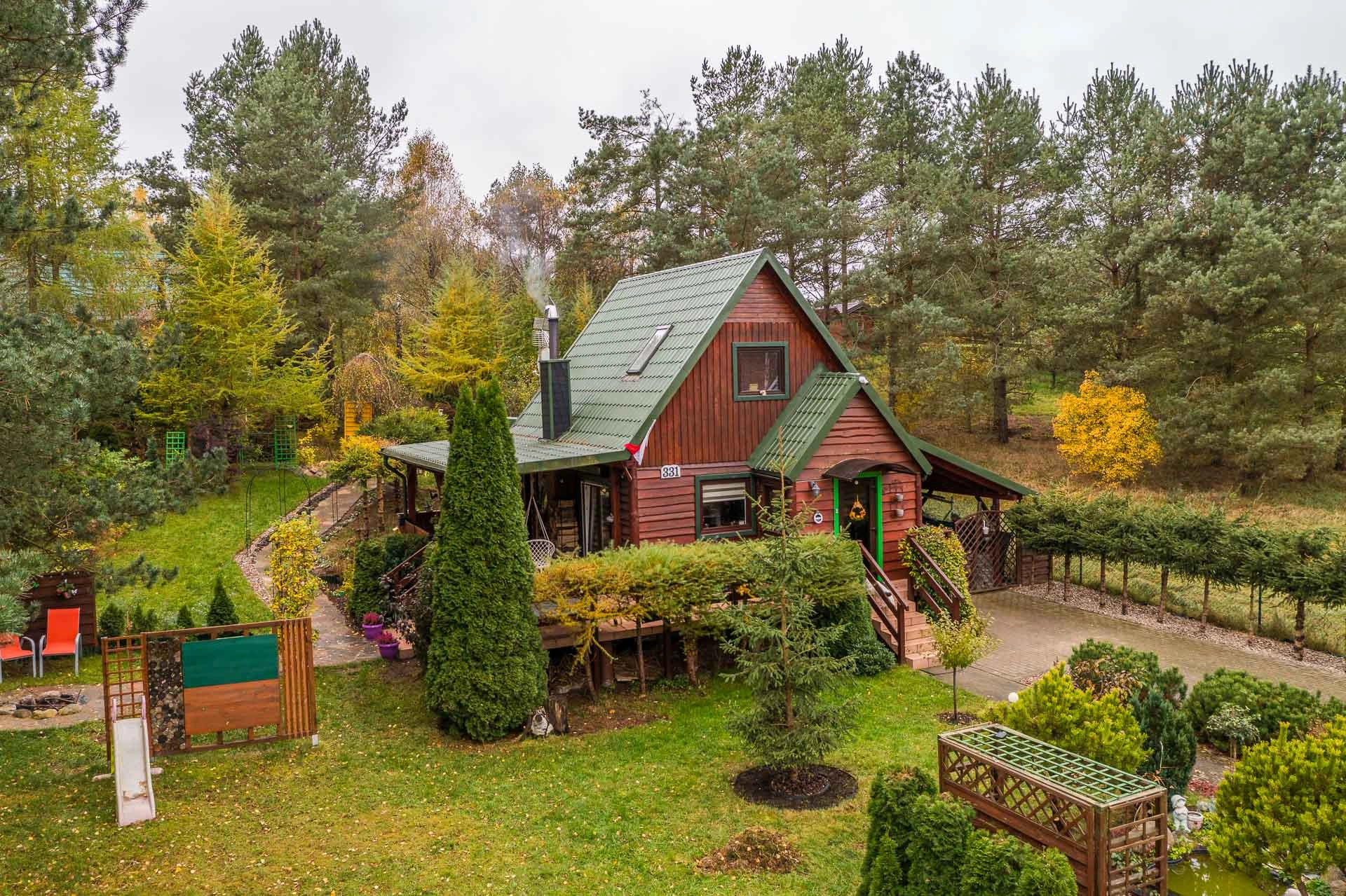 Na sprzedaż nietuzinkowy dom całoroczny z 2005 roku, wzniesiony na fundamentach, wybudowany z drewna, docieplony wełną, posadowiony na działce o powierzchni 1124 m2.
