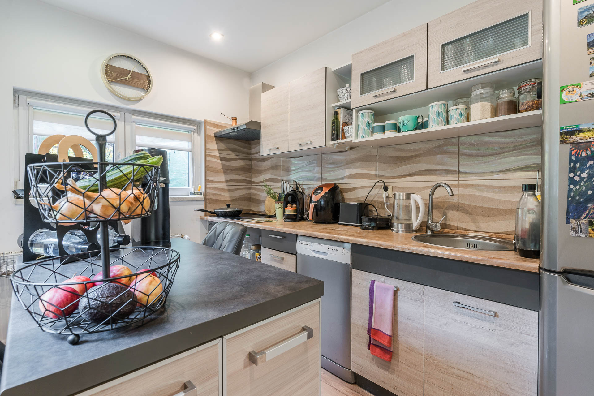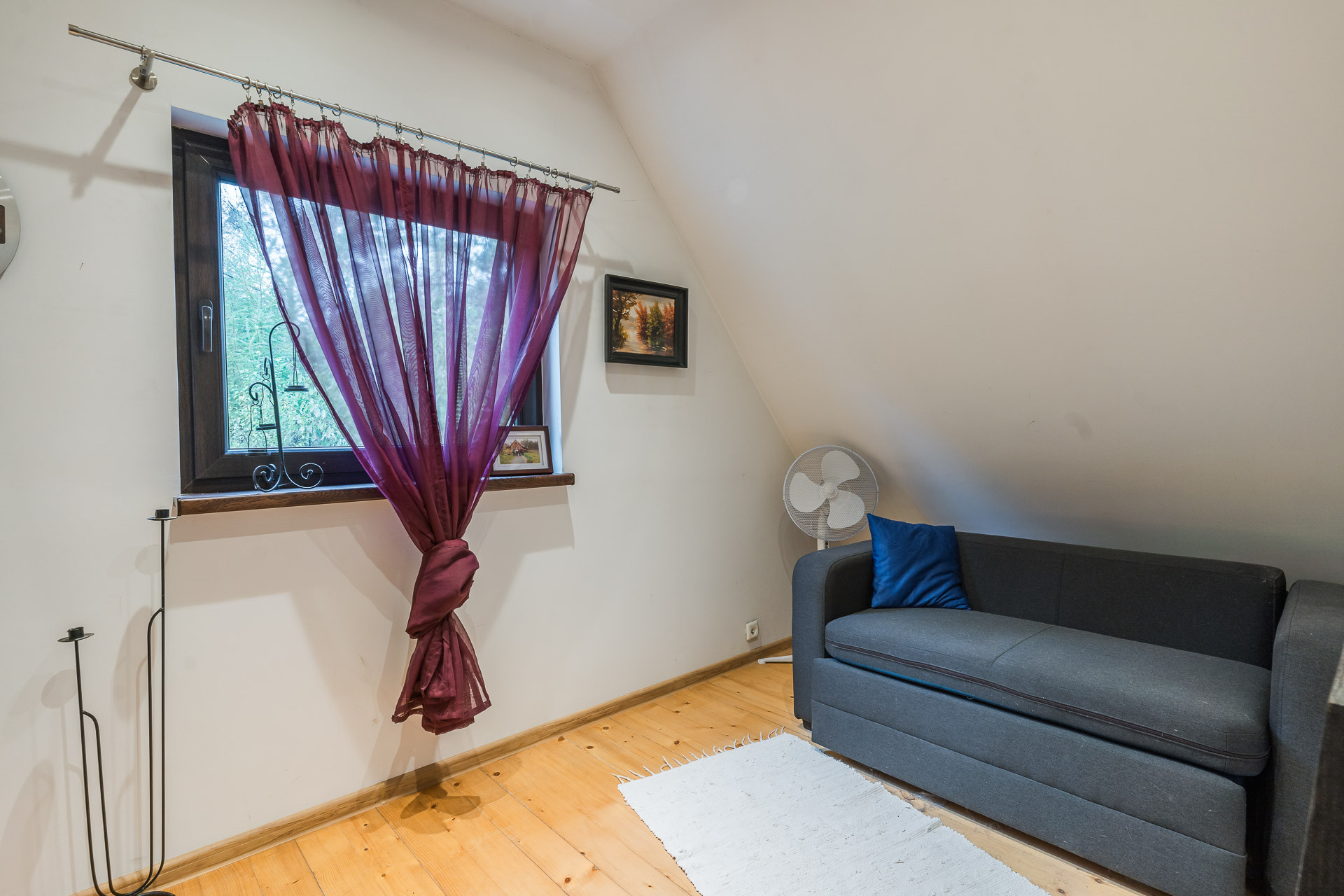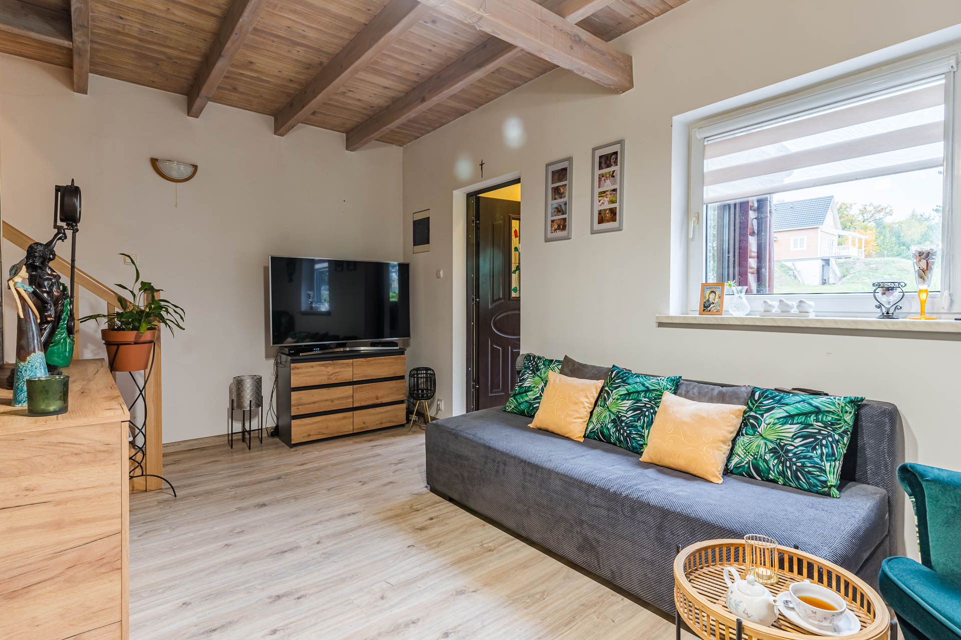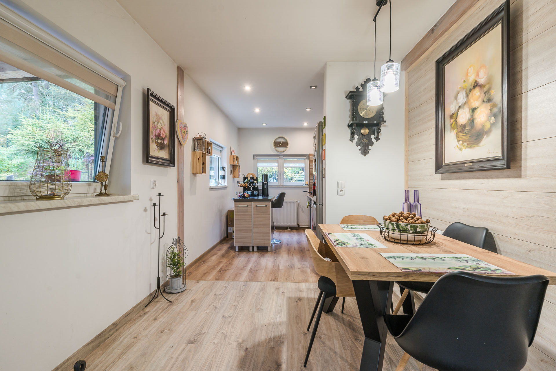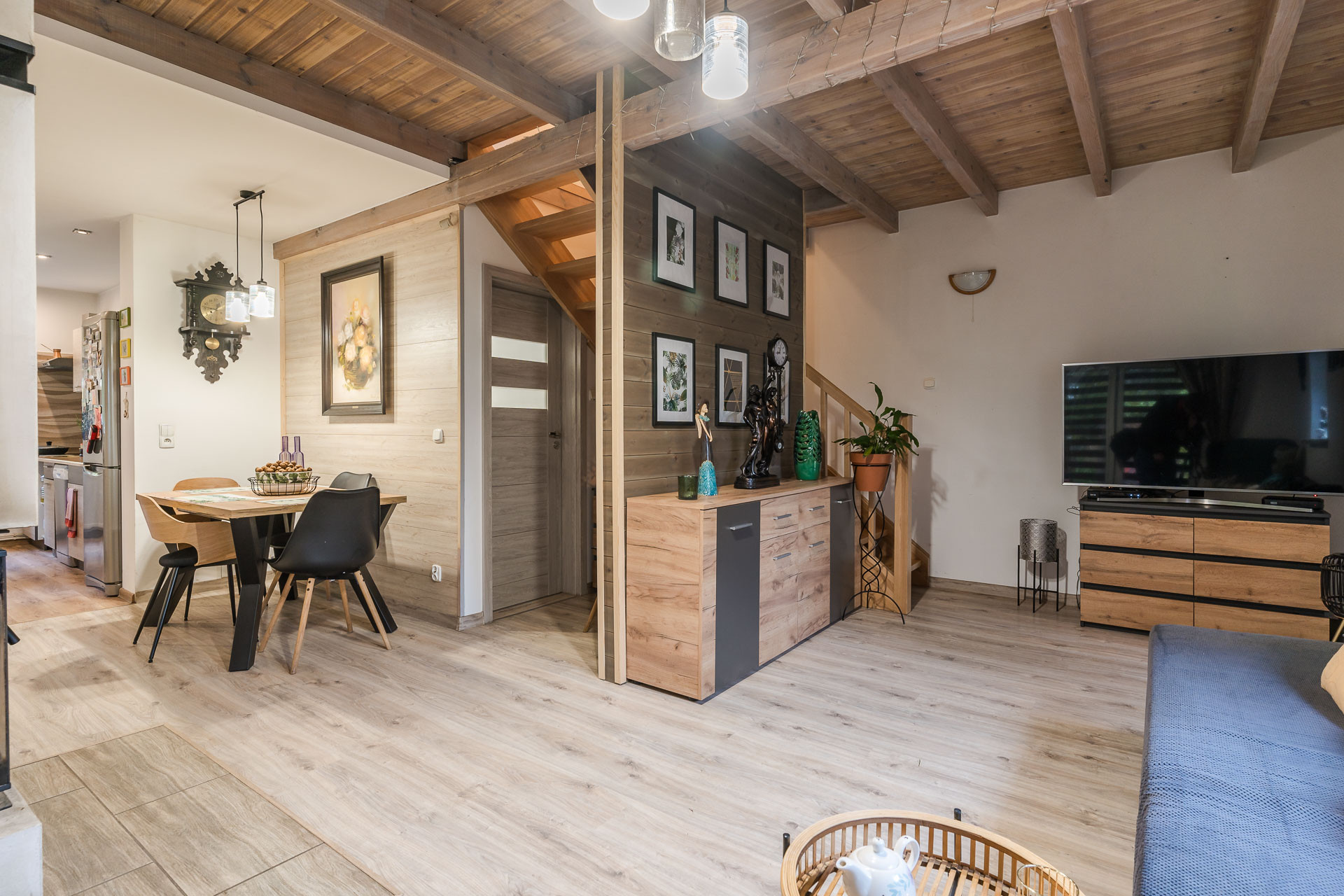 Wnętrze wykończone w nowoczesnym stylu. W 2018 r. wstawiono nowe, drewniane schody, wymieniono kuchnię, wyposażoną w dużą lodówkę, zmywarkę, płytę indukcyjną na gaz.