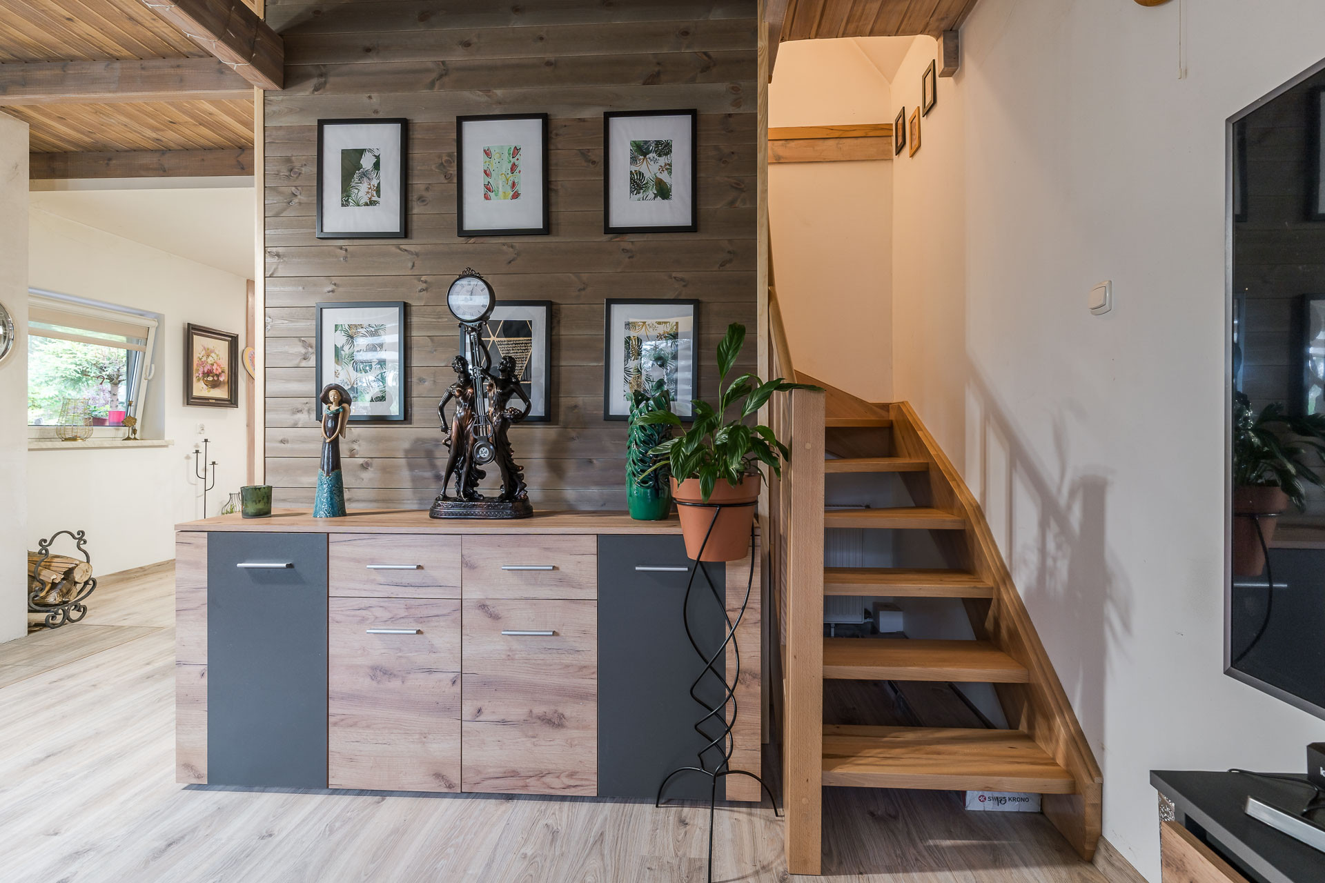 – parter z salonem, kuchnią i łazienką, z salonu wyjście na ogromny, zadaszony taras
