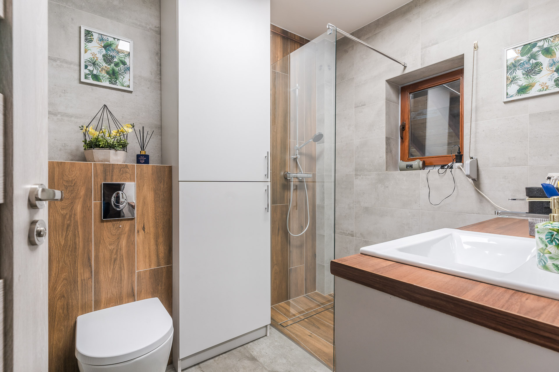 W sypialniach podłogi drewniane, na parterze panele. Łazienka została wyremontowana w 2023 roku, nowa glazura, prysznic posiada odpływ liniowy.