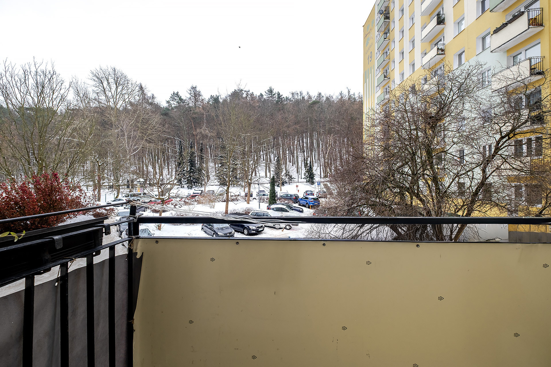 3 pokojowe (pierwotnie składało się z 4 pokoi i do tego układu można wrócić niewielkim nakładem – dwa pokoje zostały ze sobą połączone, a miejsce zlikwidowanej ściany pokazano na rzucie pomieszczeń) ustawne, jasne i ciepłe mieszkanie o powierzchni użytkowej 59,27 m2. Znajduje się na 1 piętrze w budynku położonym w otulinie lasu, będącego częścią Trójmiejskiego Parku Krajobrazowego. Okna, za wyjątkiem jednego, wychodzą na stronę południową przez co mieszkanie jest bardzo dobrze nasłonecznione. Na podłogach w pokojach parkiet, który dzisiaj jest zasłonięty, do renowacji. Łazienka została wyremontowana niedawno, natomiast reszta pomieszczeń wymaga odnowienia.