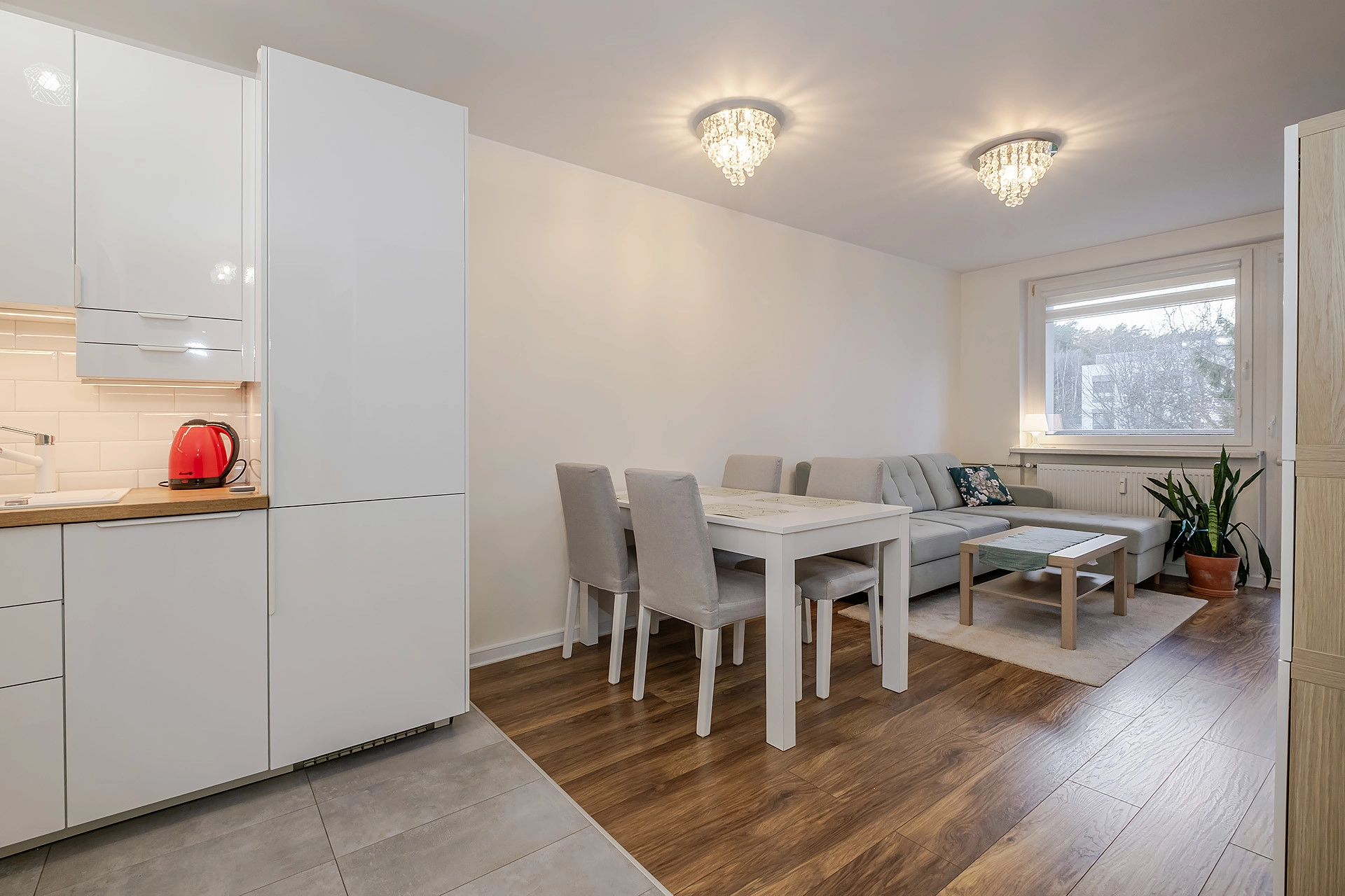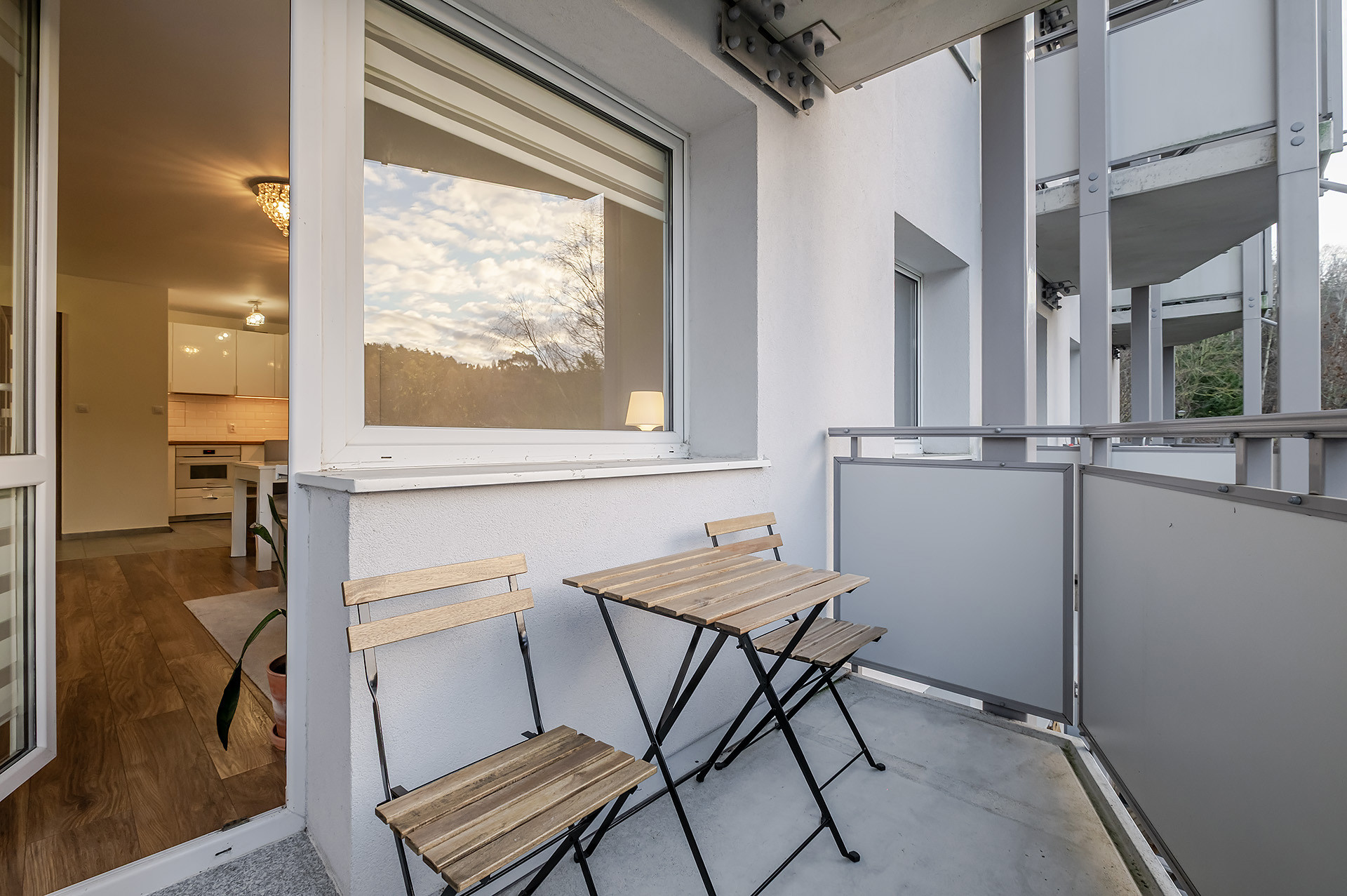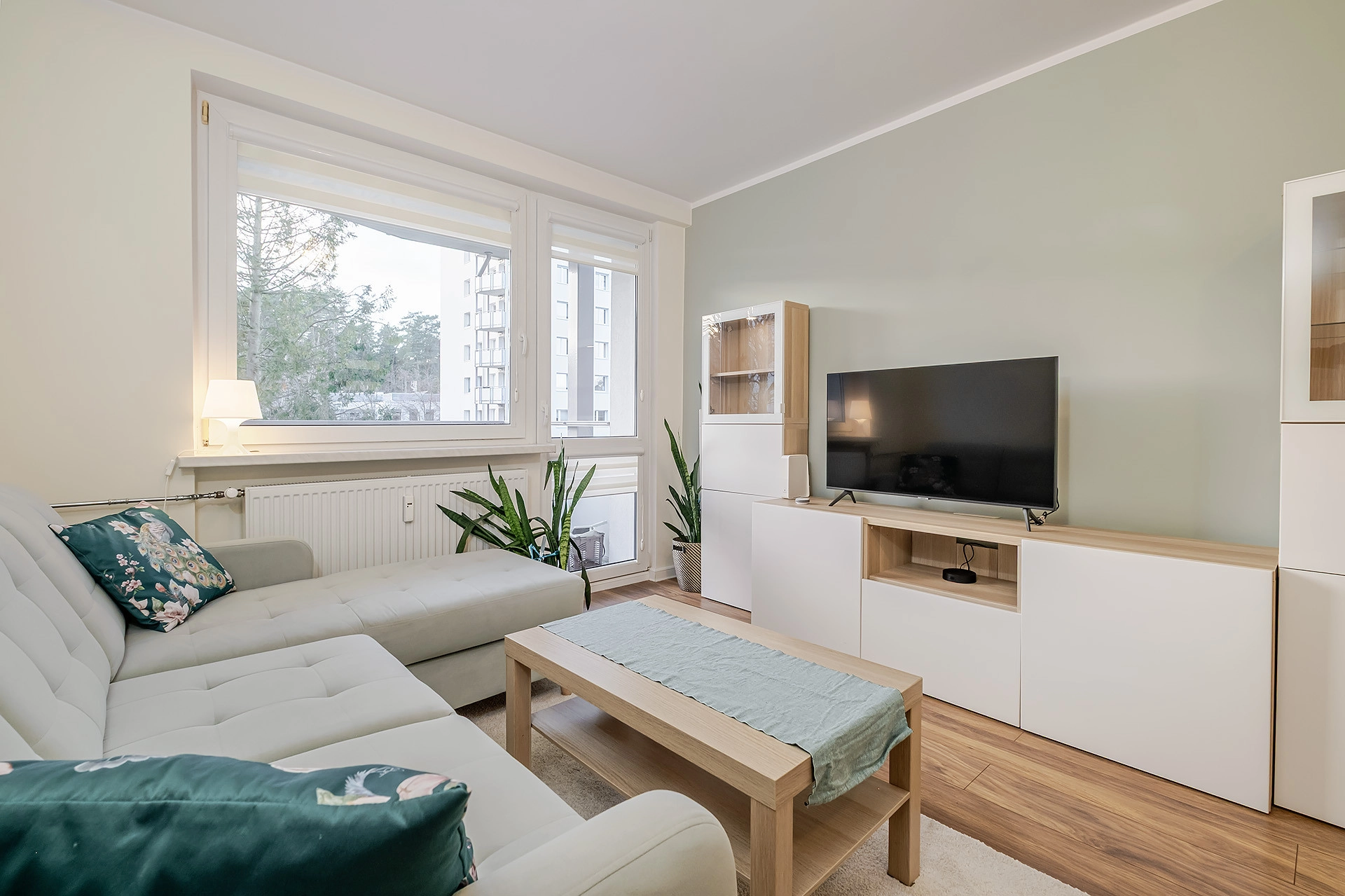 Położenie mieszkania gwarantuje szybki dostęp do lasu i wszystkich związanych z nim form relaksu, a do sopockich plaż dzieli nas odległość przekraczająca 2 km. W pobliżu Uniwersytet Gdański, Opera Leśna, a popularny Monciak w odległości spacerowej ok. 20 minut. Komunikację zapewniają autobusy miejskie.