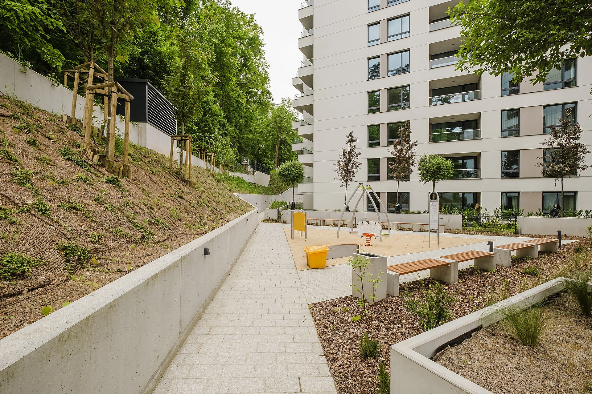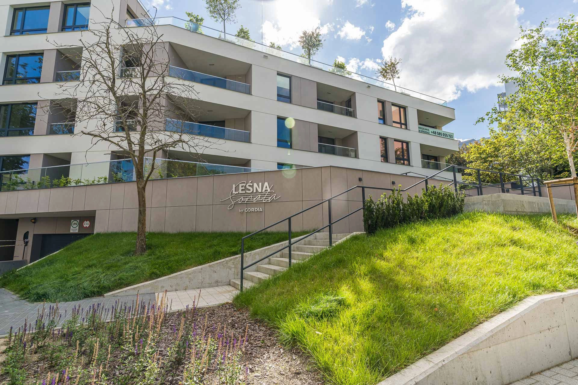 Apartament znajduje się w prestiżowej inwestycji Leśna Sonata, zrealizowanej w 2024 roku przez renomowanego dewelopera Cordia. Budynek wyróżnia nowoczesna, śmiała architektura oraz starannie dopracowane detale, które nadają mu wyjątkowy charakter. Inwestycja łączy wysoką estetykę z funkcjonalność i komfort. Do dyspozycji mieszkańców są eleganckie części wspólne, chill room, taras widokowy na dachu, całodobowa ochrona, monitoring i recepcja. Na terenie osiedla znajdują się także miejsca na rowery i wózki oraz plac zabaw na dziedzińcu. Całość uzupełnia videofon, podnoszący wygodę i bezpieczeństwo.