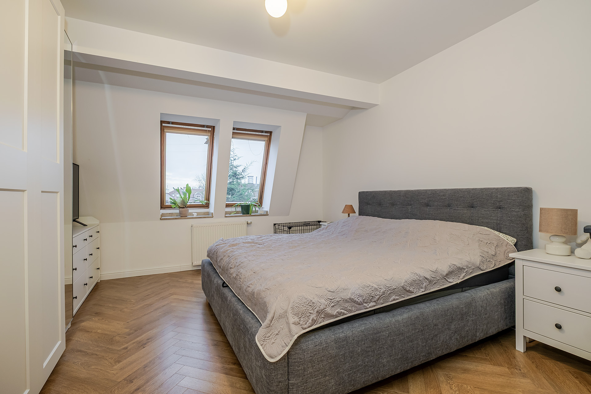 Dwie sypialnie – komfortowe, przytulne; jedna z wyjściem na balkon. Druga świetnie sprawdzi się jako pokój dziecięcy, gabinet lub pokój gościnny.
