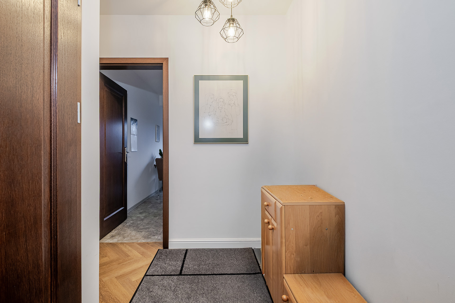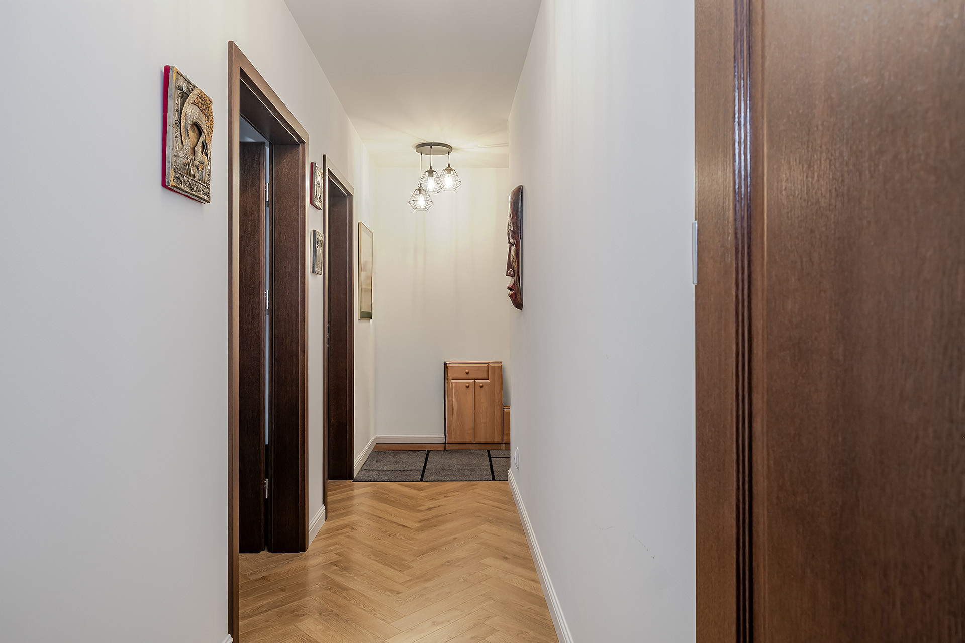 Mieszkanie wykończone jest w wysokim standardzie: na podłogach wysokiej jakości panele, drewniana stolarka drzwiowa, okna PCV oraz drzwi antywłamaniowe.
