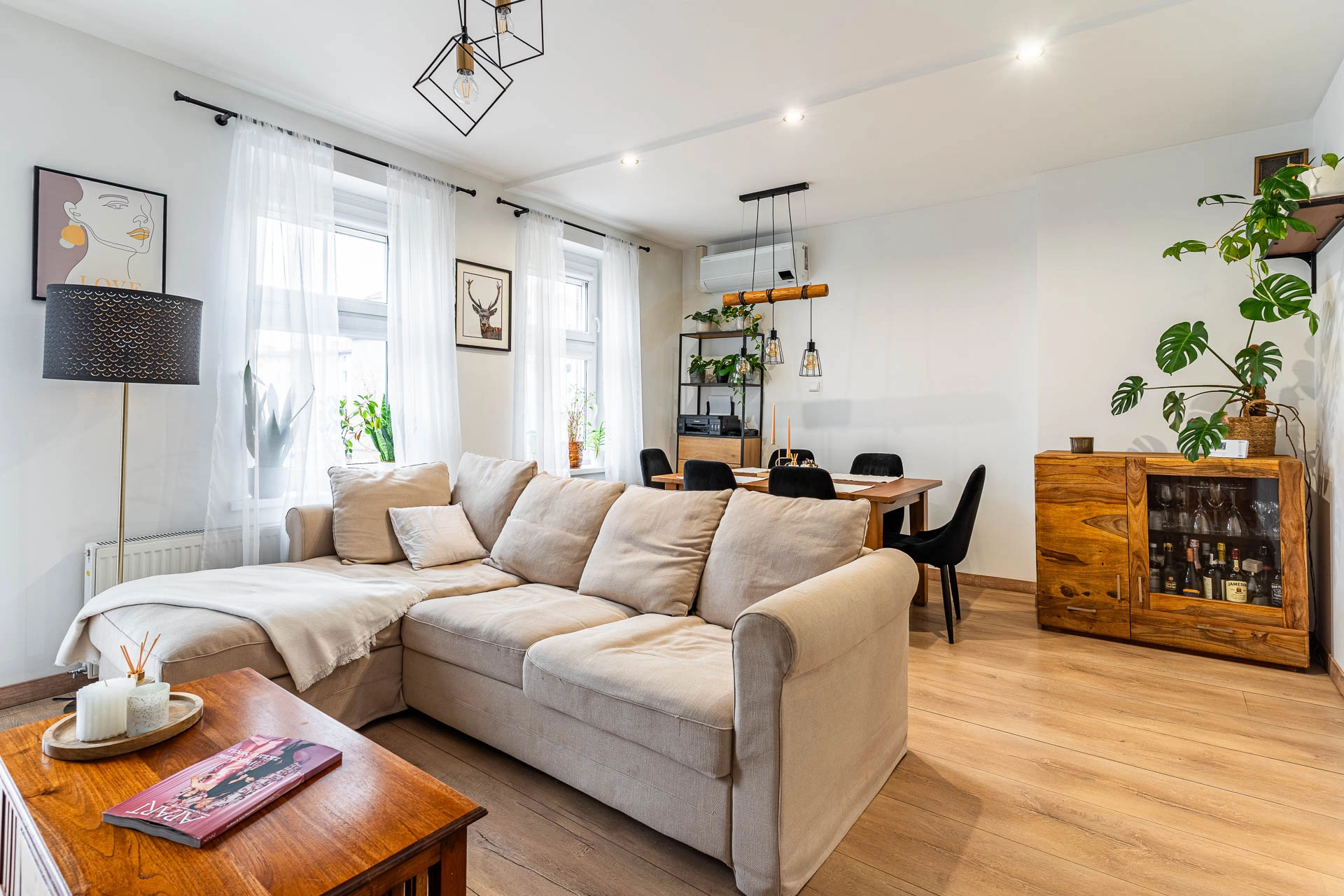 W mieszkaniu zainstalowane są dwa klimatyzatory oraz nowoczesny piec gazowy dwufunkcyjny.
