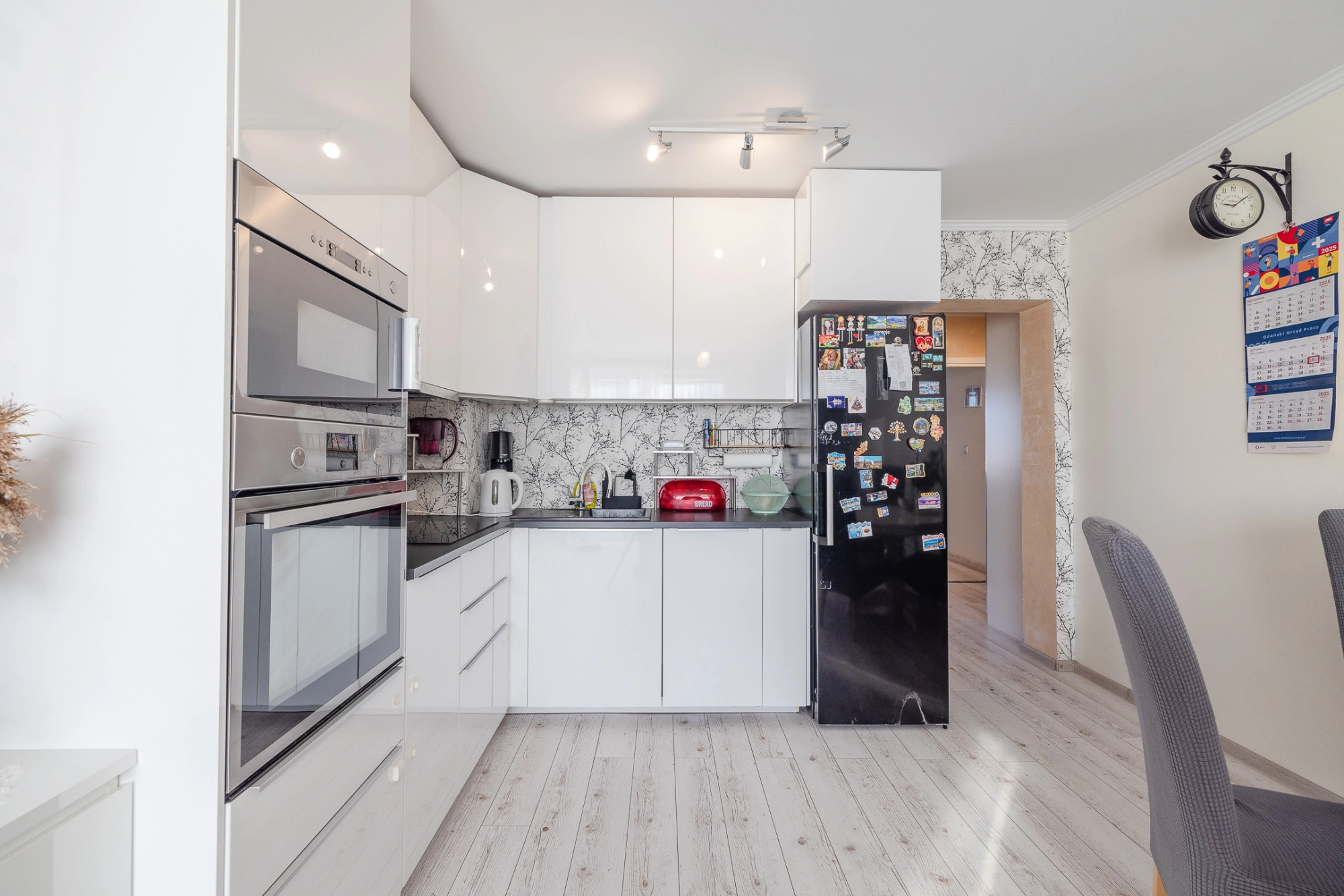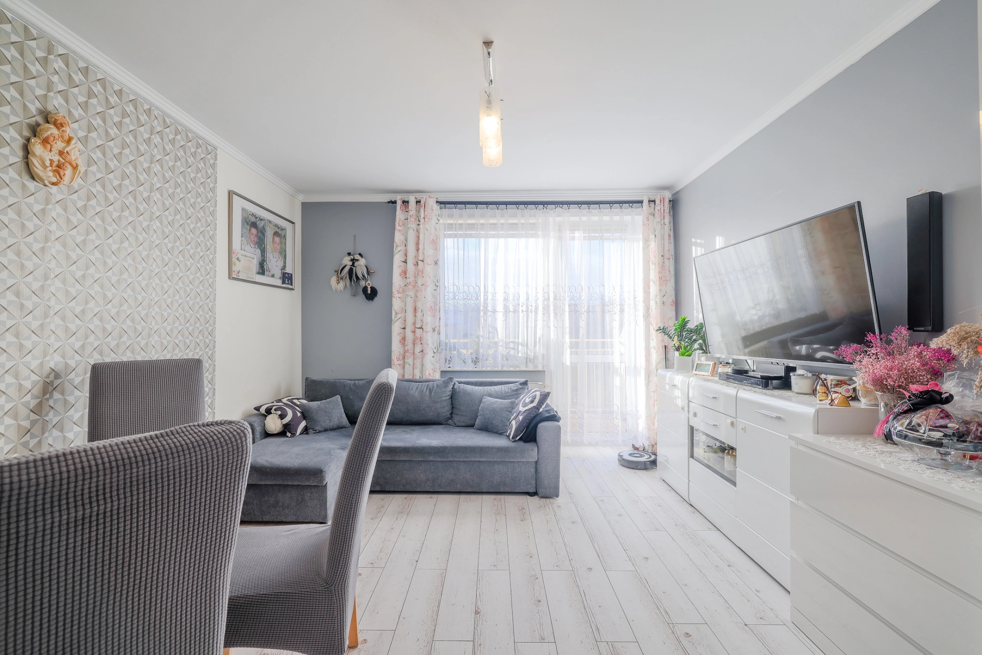 – salon z aneksem kuchennym oraz wyjściem na balkon od strony południowej; aneks z meblami w zabudowie oraz wyposażeniem w sprzęt AGD,