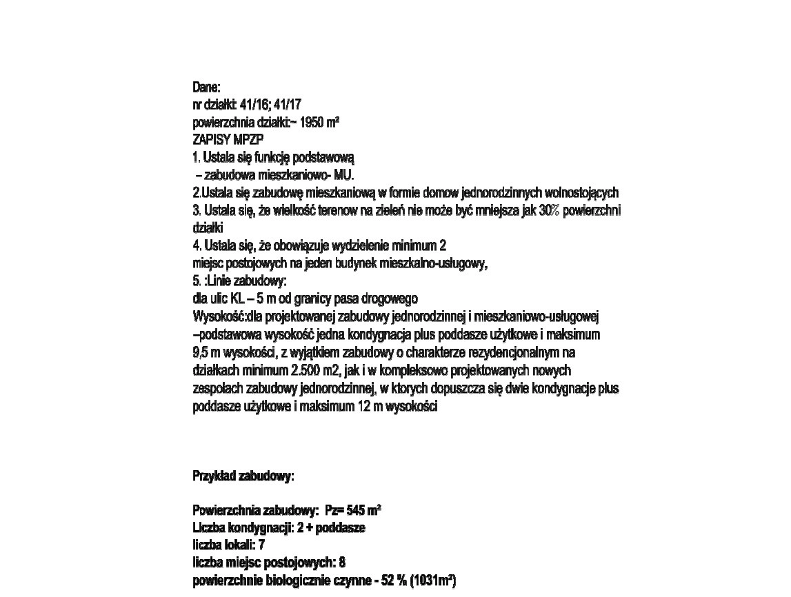 Istnieje możliwość uzyskania PnB (cena nie uzględnia PnB), aktualnie właściciel posiada jedynie koncepcję.
