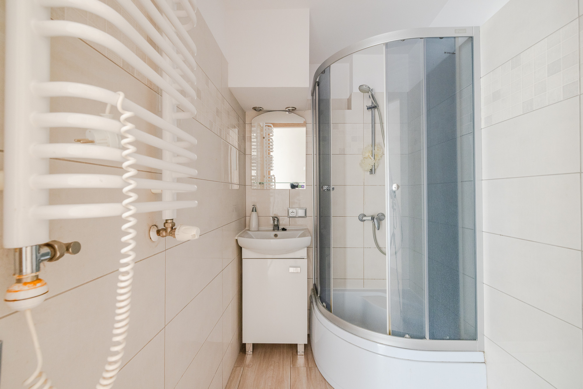 -łazienka 2,5 m2 z kabiną prysznicową i miejscem na pralkę