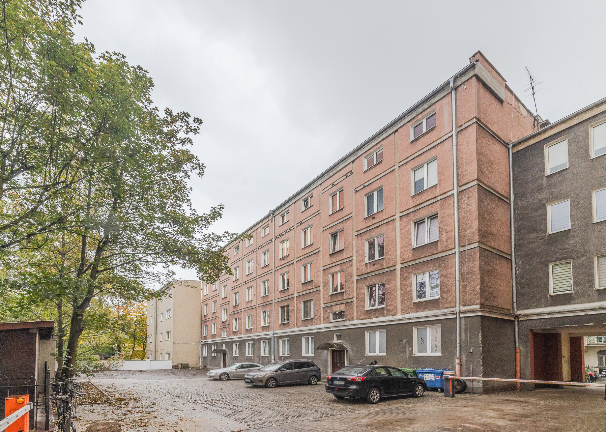 Czteropiętrowa kamienica z 1950r. Budynek 2 klatkowy z własnym podwórzem oraz wjazdem zabezpieczonym szlabanem. Na podwórzu świeżo ułożona kostka z miejscami postojowymi.