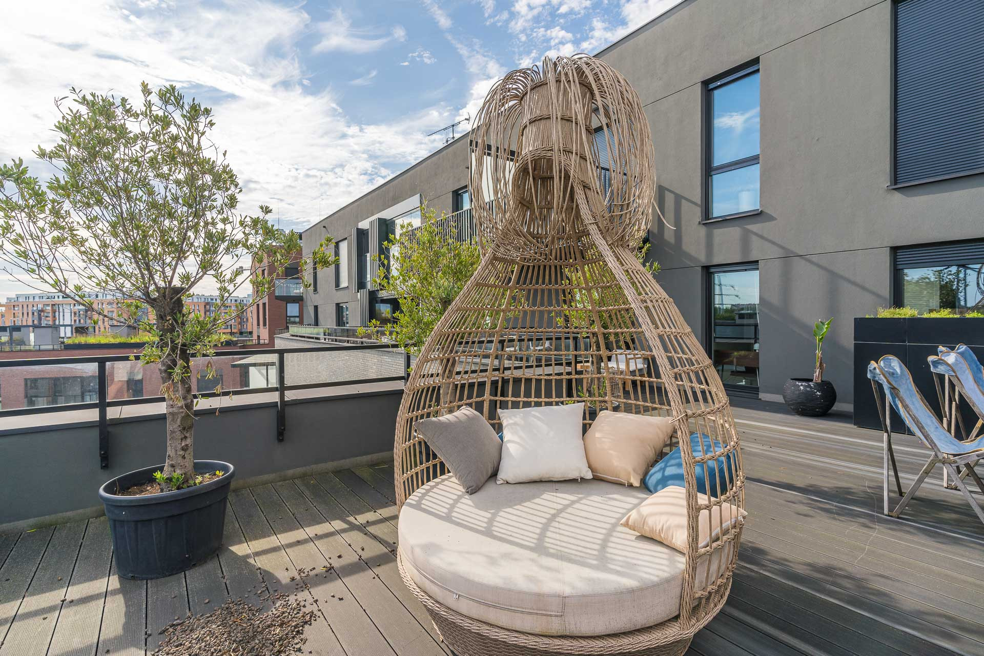 Spektakularny taras (75,28 m²) – prawdziwe przedłużenie salonu. Idealne miejsce na poranną kawę, kolację o zachodzie słońca czy spotkania z przyjaciółmi.