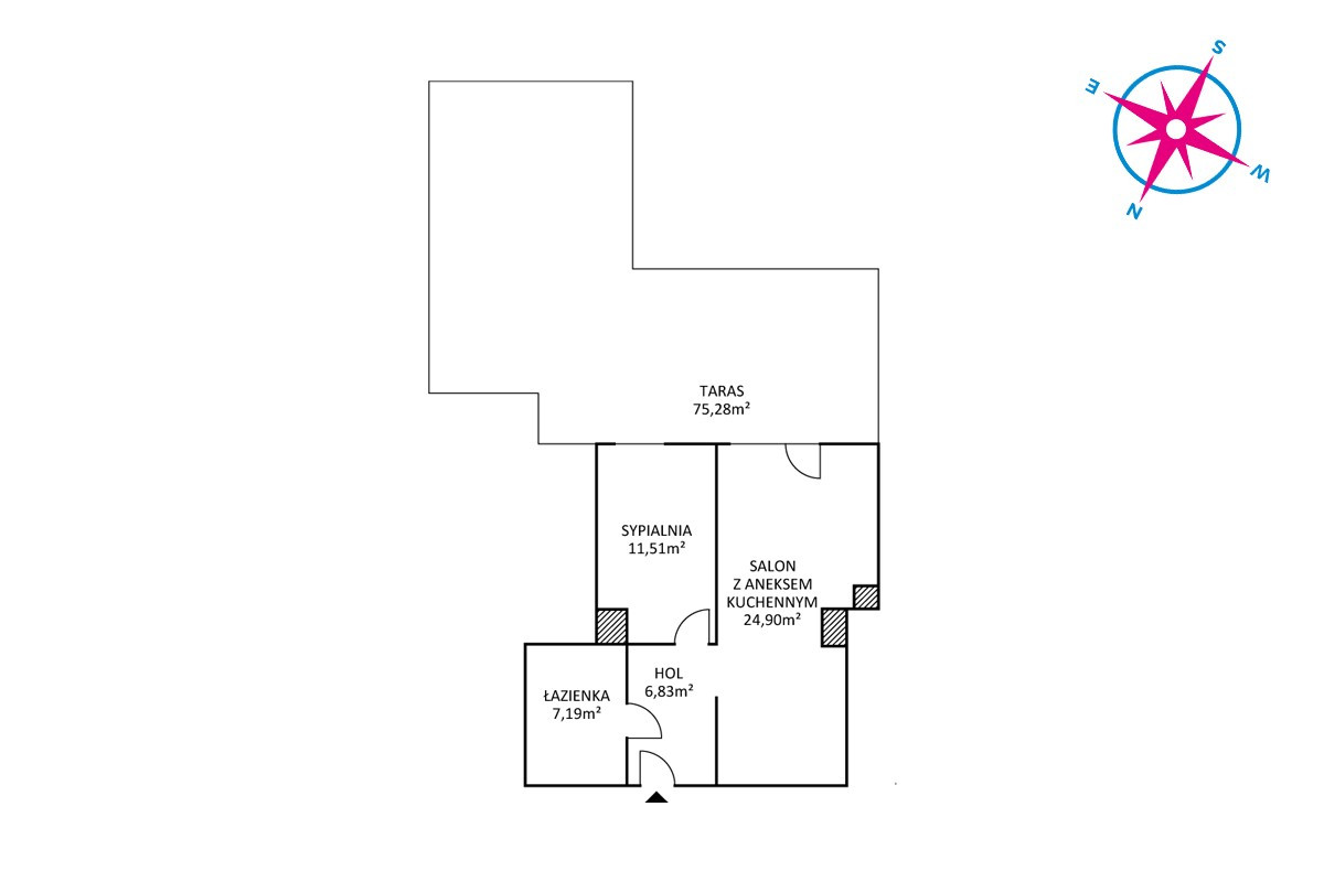 Funkcjonalny przedpokój (6,83 m²) – wygodna organizacja przestrzeni.