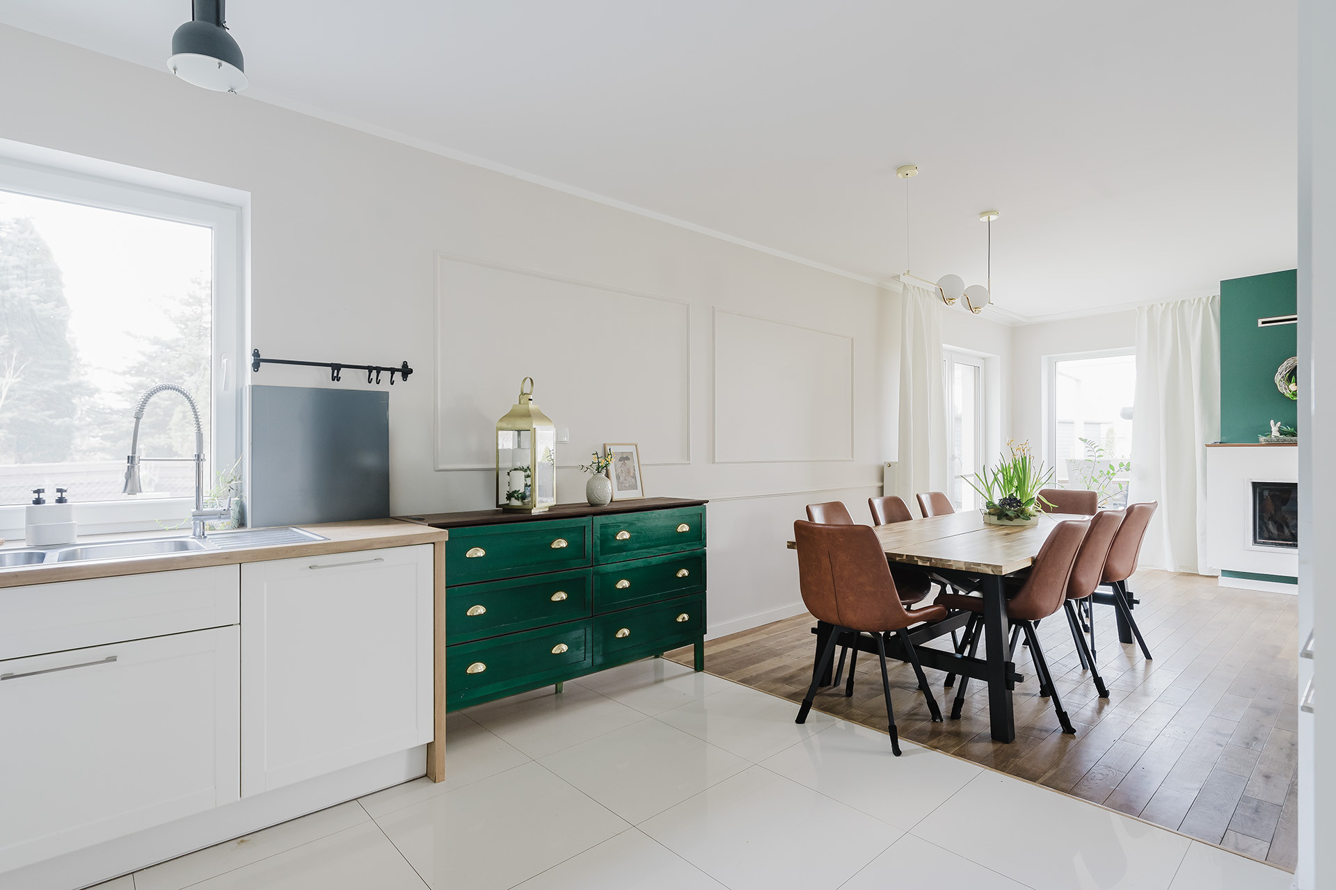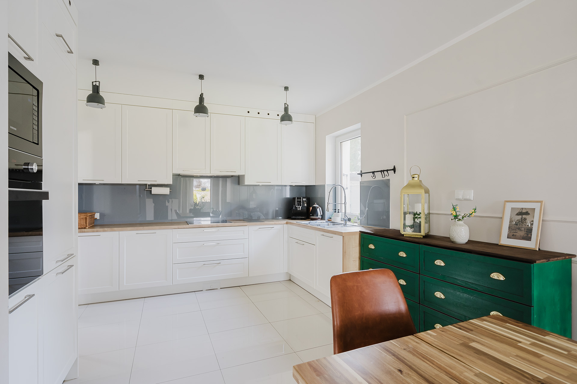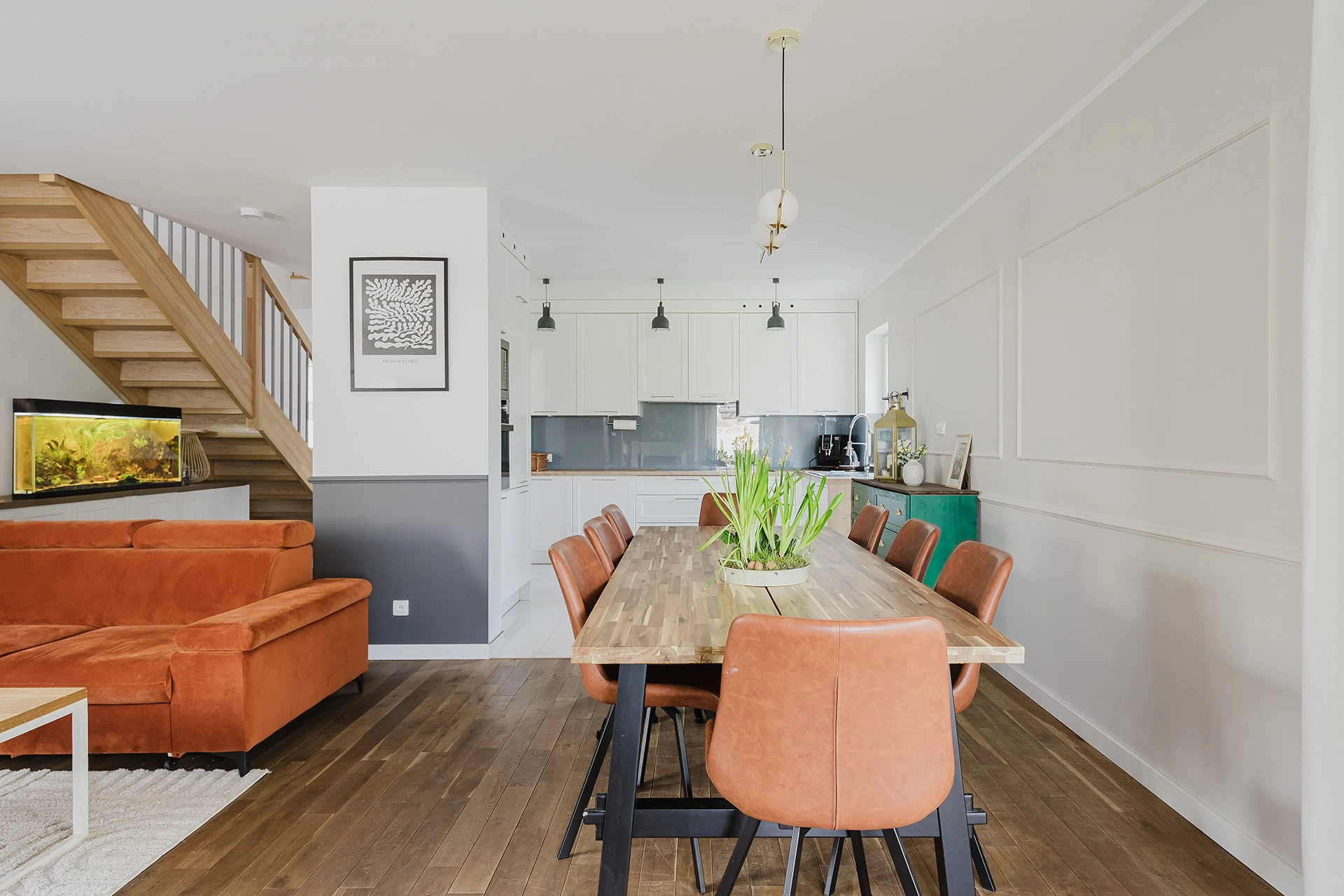✅ Wysoki standard wykończenia – deski dębowe, barlineckie, drewniane schody, zabudowa kuchenna na wymiar, sprzęt AGD wysokiej jakości.