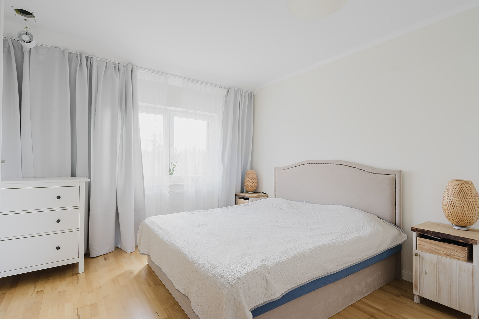 * Główna sypialnia (21,2 m²) z wydzieloną garderobą.