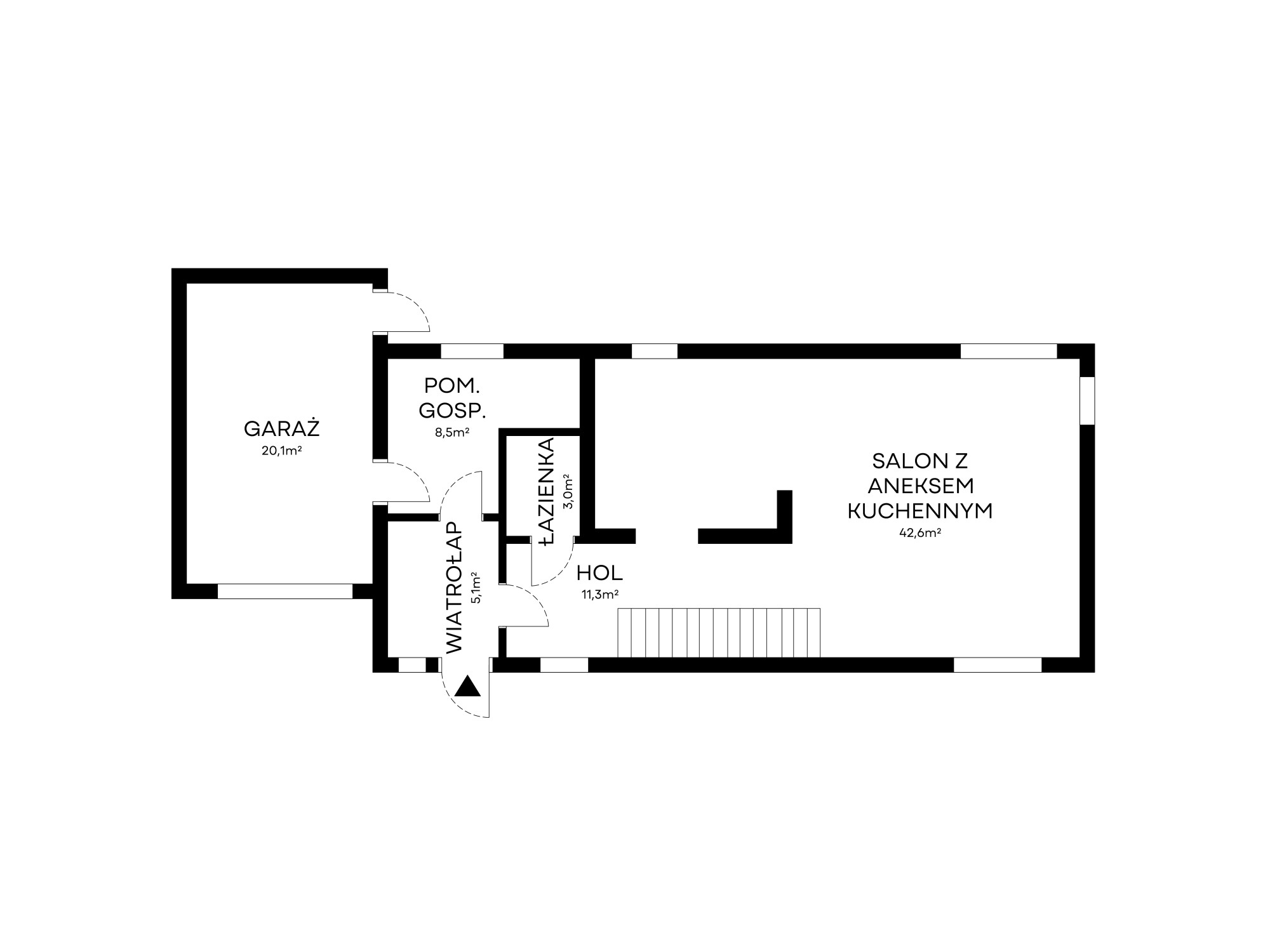 * Garaż (20,1 m²) – z wyjściem na ogród.