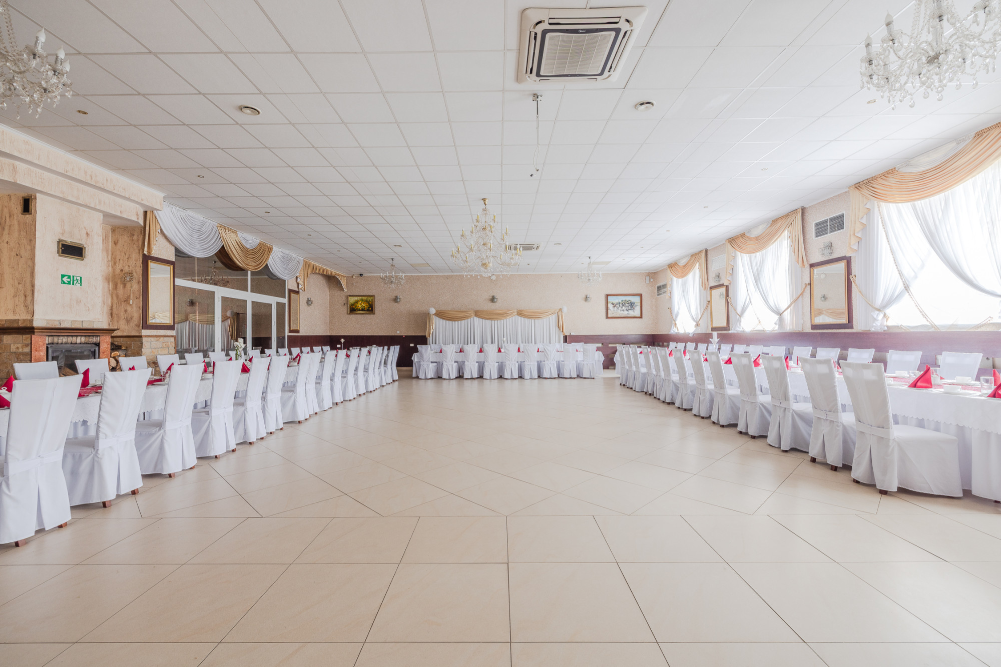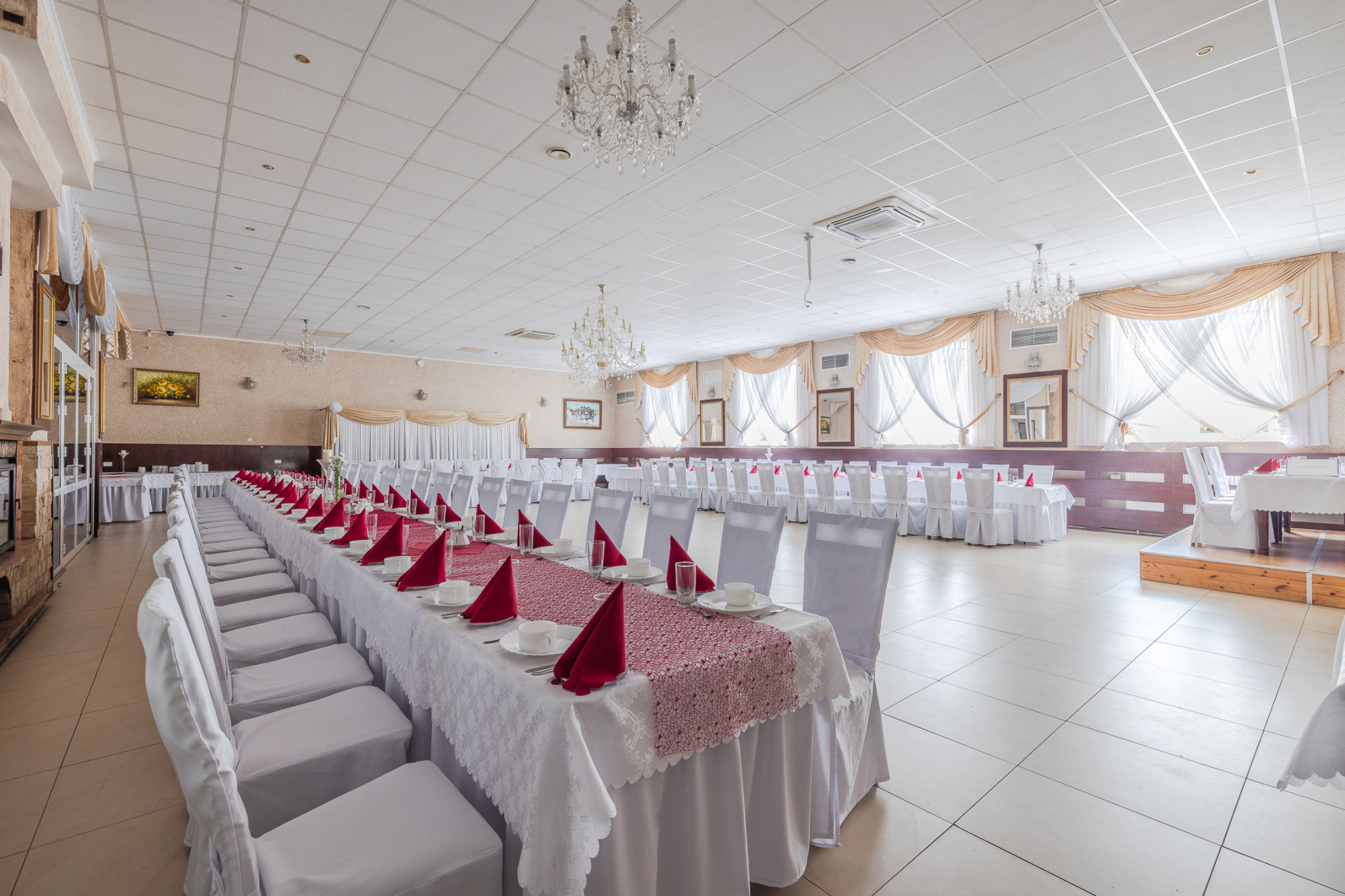 – Głównego budynku gastronomicznego o powierzchni ok. 695 m², wybudowanego w 1985 roku. Posiada przestronne sale bankietowe 139 m² i 193 m², w pełni wyposażoną kuchnię 32 m², toalety, pomieszczenia gospodarcze oraz magazyny. Całość jest w bardzo dobrej kondycji, z ceramicznymi płytkami na podłodze, co podkreśla jego funkcjonalność do prowadzenia działalności gastronomicznej.