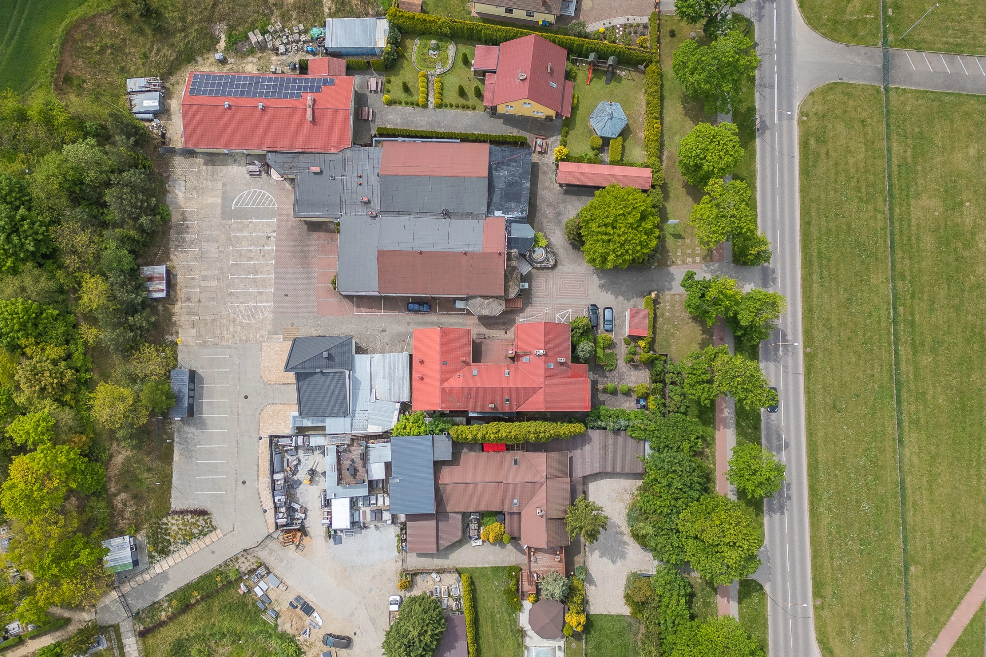 – Budynku mieszkalnego z 2007 roku, trzykondygnacyjnego, o powierzchni ok. 639 m², przeznaczonego na pokoje gościnne. Na parterze znajduje się 8 pokoi dwuosobowych, w tym pokój dla osoby niepełnosprawnej, kuchnia oraz łazienki. Piętro oferuje dodatkowe pokoje z łazienkami. Budynek ma poddasze użytkowe, co zwiększa jego funkcjonalność.
