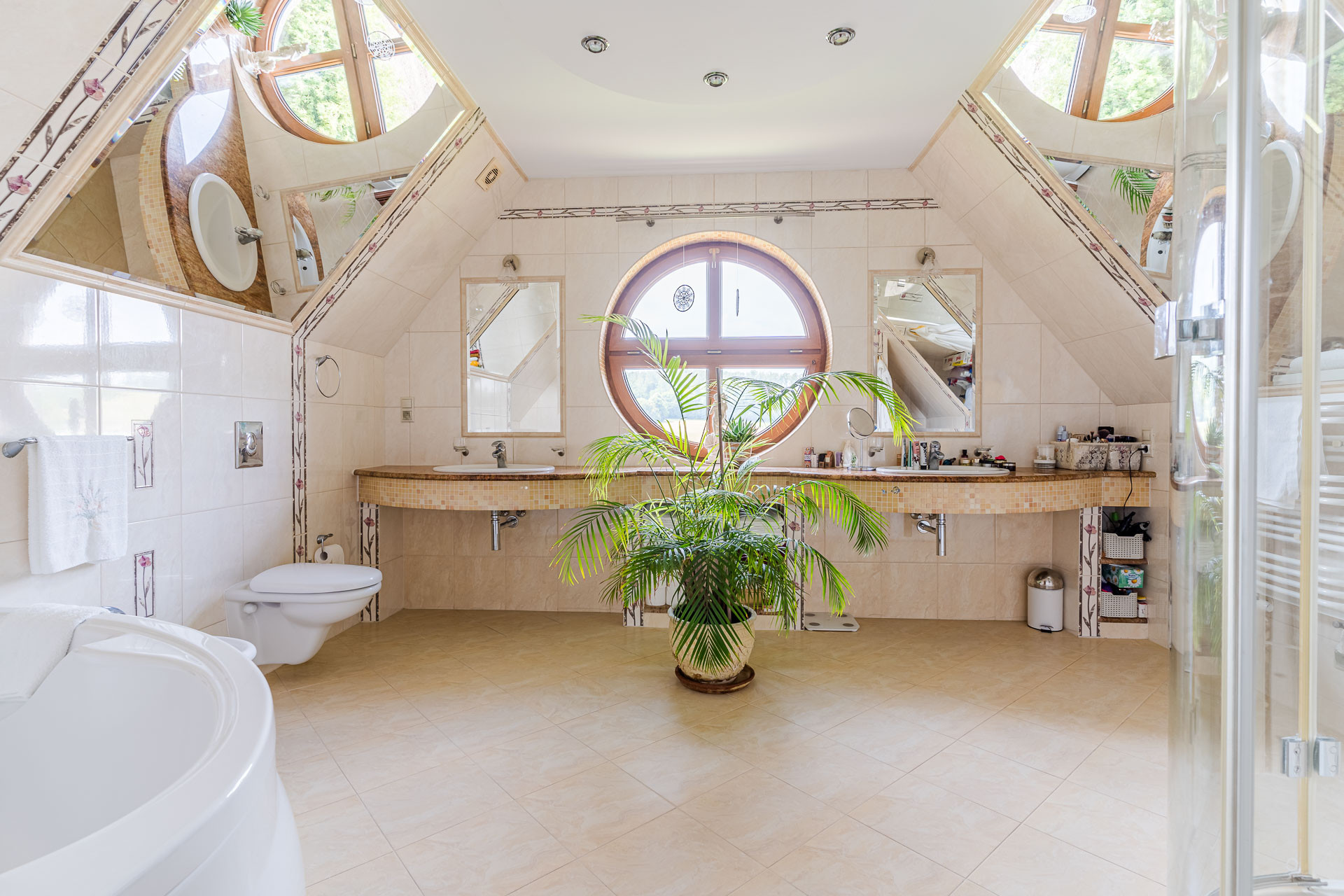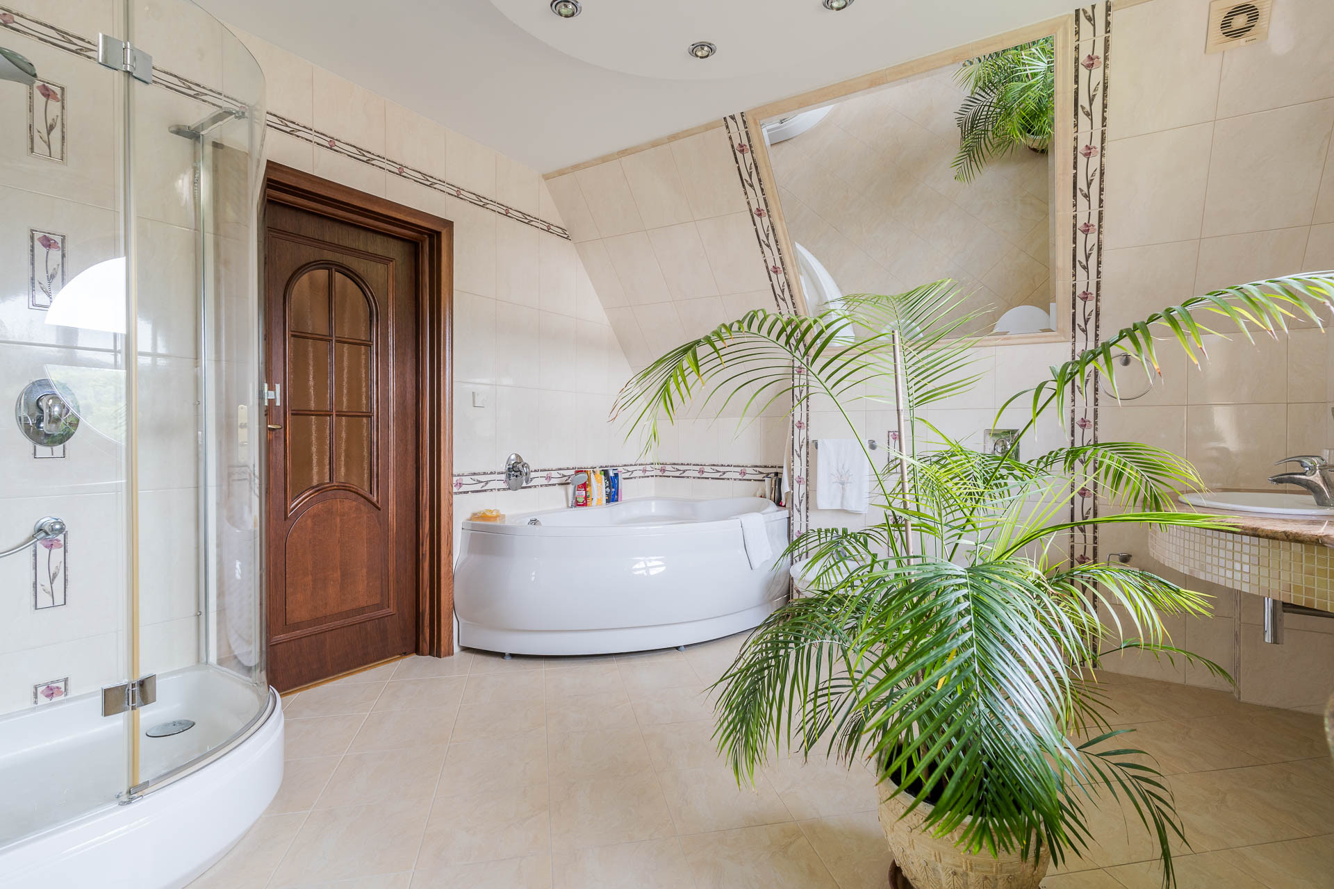przestronna łazienka (12.00 m2) z wanną oraz prysznicem,
