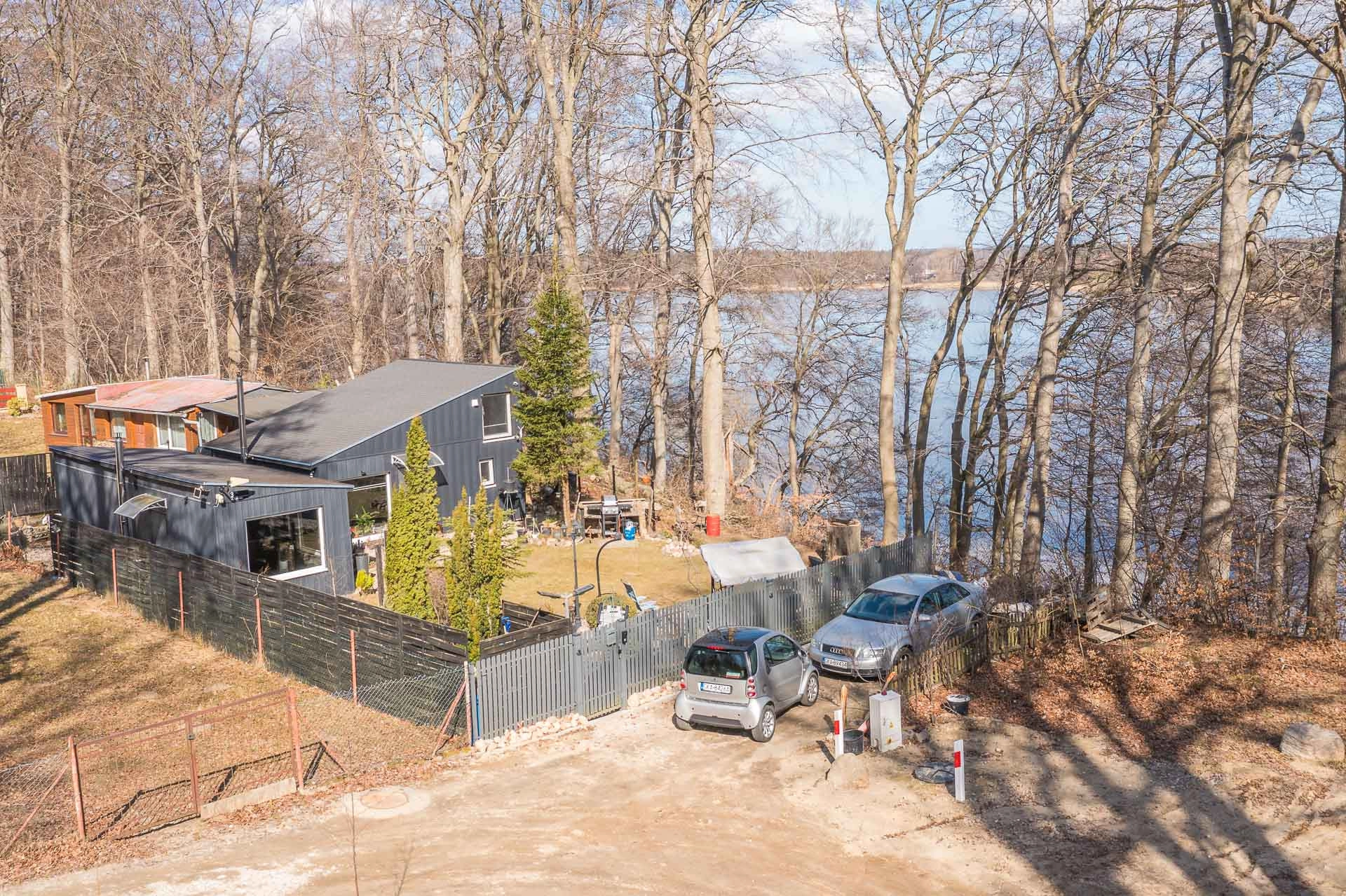 Drugi dom o powierzchni 30m2. Powstał z myślą jako studio lub dodatkowe miejsce do wypoczynku. Posiada kominek na drewno oraz ogrzewanie podłogowe. Zabudowana kuchnia połączona z wyznaczonym miejscem do relaksu wykończona na najwyższym poziomie tworzy wspaniały klimat. W domku jest oddzielona łazienka oraz garderoba. Budynek posiada wysokiej jakości rekuperator wymiany powietrza. Również posiada panoramiczne okna, które wypełniają potrójne szyby. Oświetleniem oraz ogrzewaniem również sterowność daje nam system Smart Home.