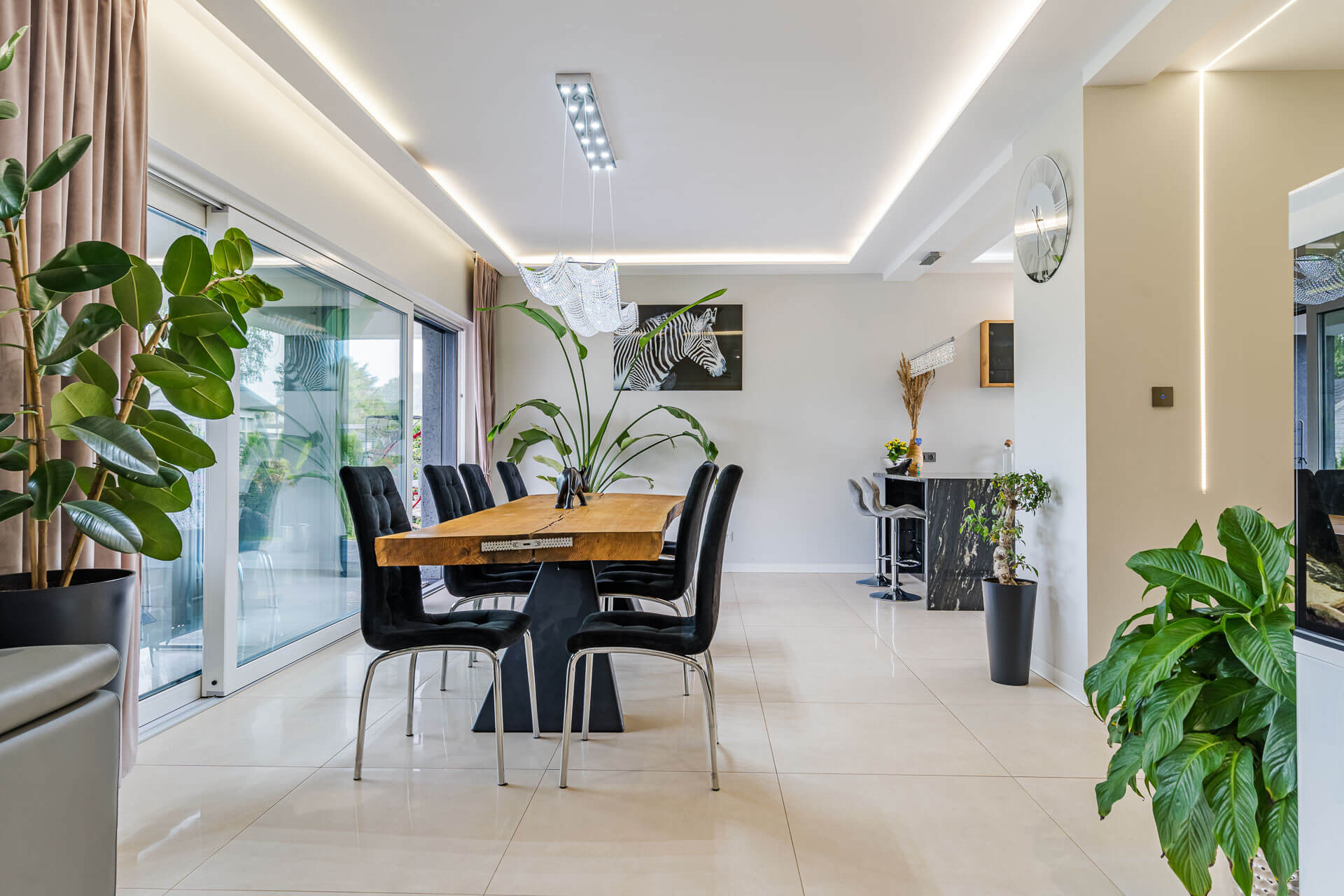 -Dom posiada systemy inteligentnego zarządzania oświetleniem, roletami i ogrodem