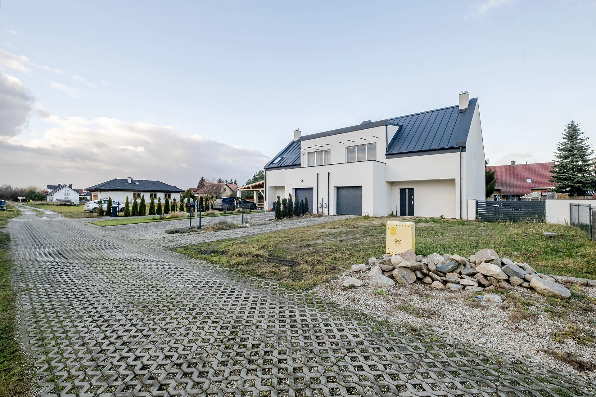 Dom znajduje się w kameralnej, spokojnej okolicy, wśród nowej zabudowy jednorodzinnej i bliźniaczej, co gwarantuje komfort, prywatność oraz wysoki standard sąsiedztwa. To idealna pr
