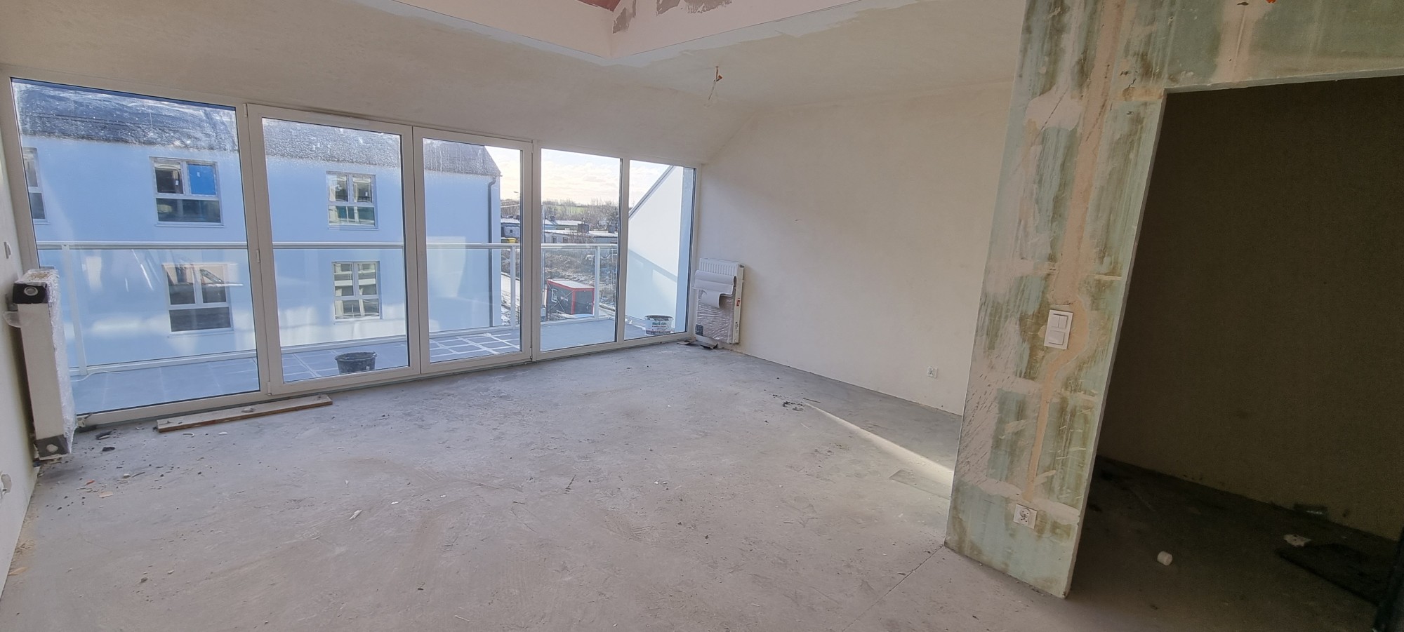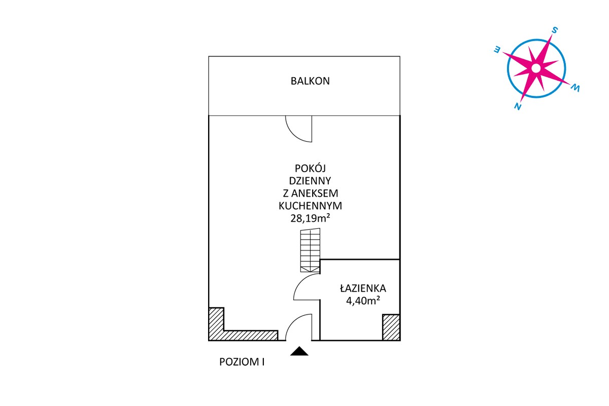 Mieszkanie jest w stanie deweloperskim, do własnego wykończenia i aranżacji. Składa się ono z pokoju dziennego z aneksem kuchennym, antresolą i wyjściem na duży balkon oraz łazienki z toaletą.