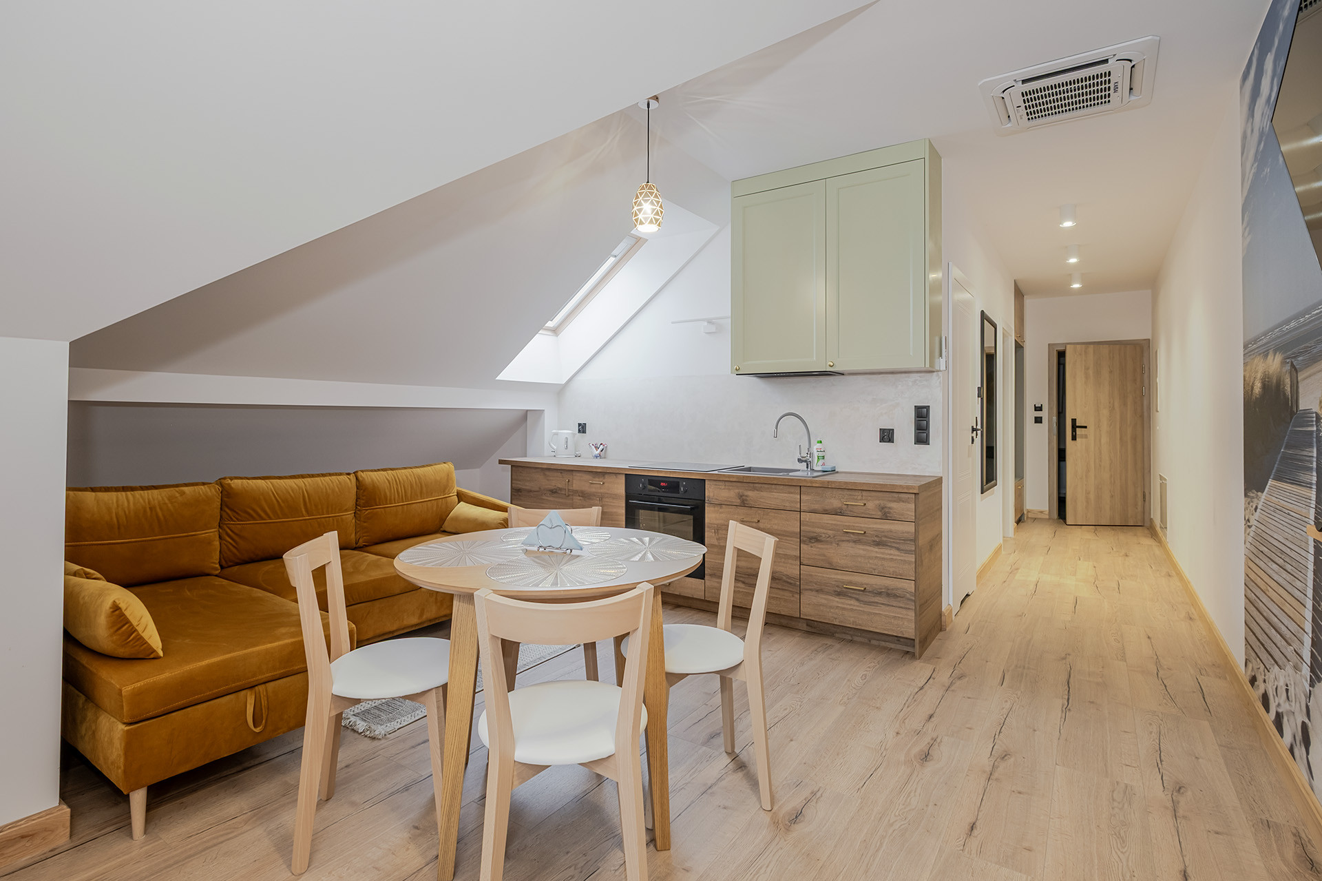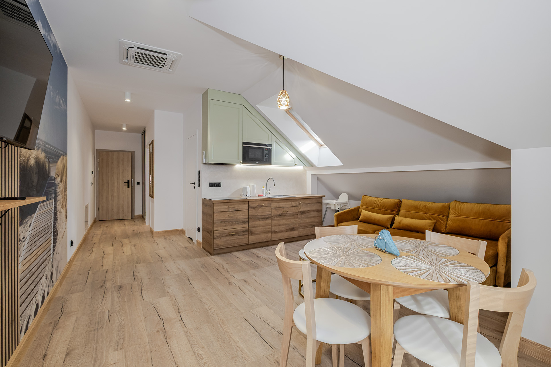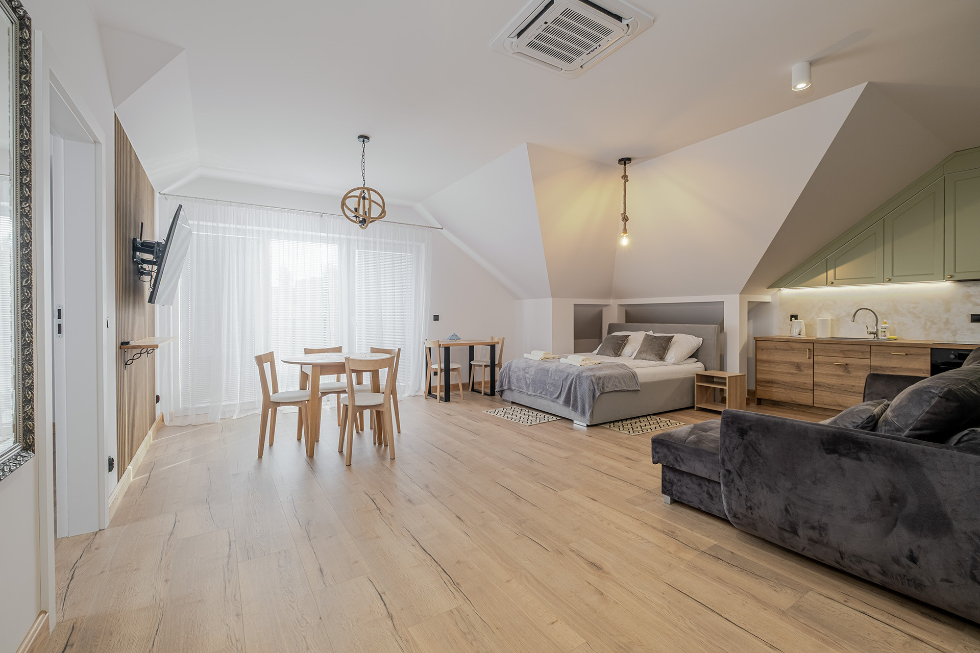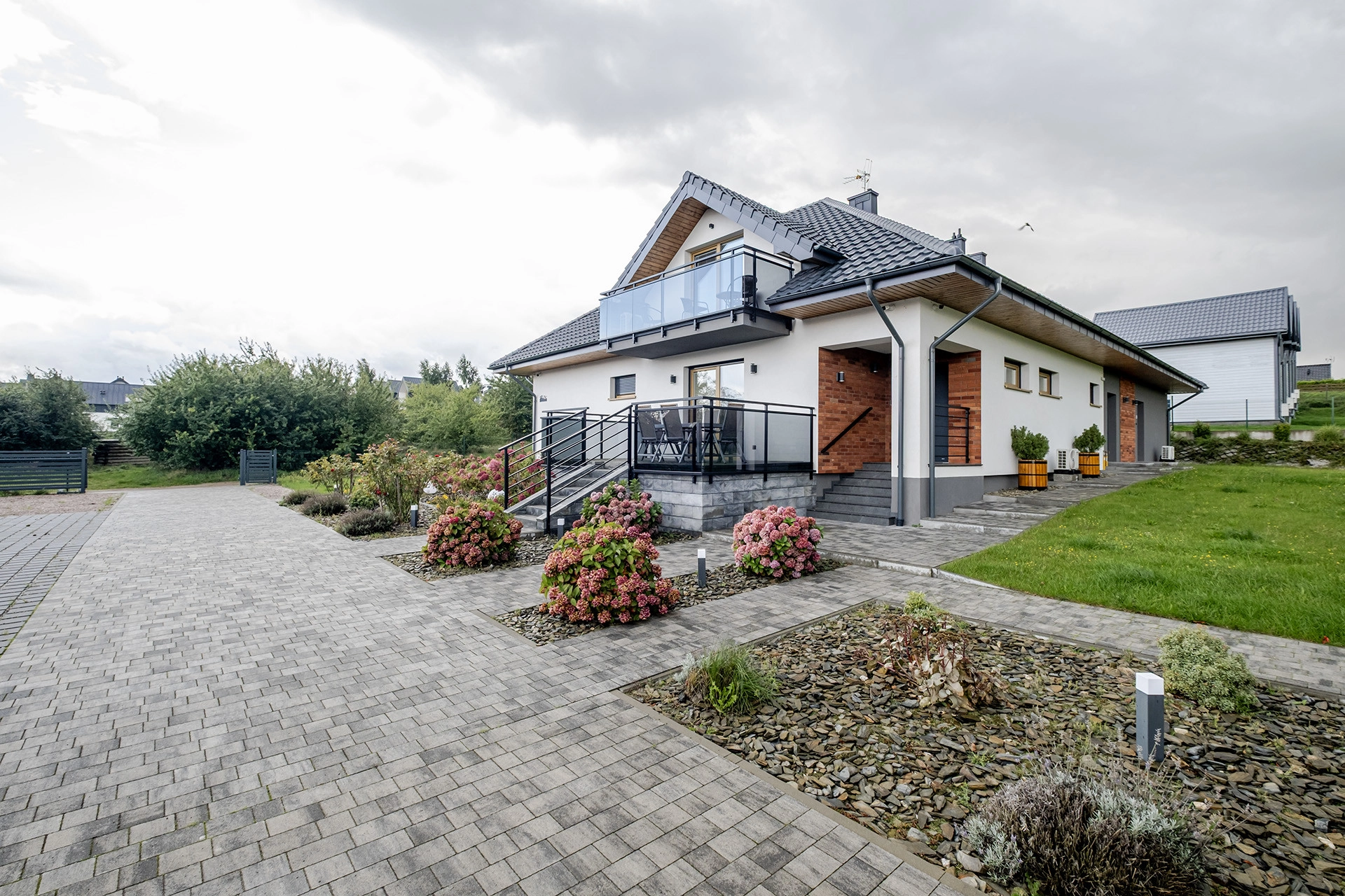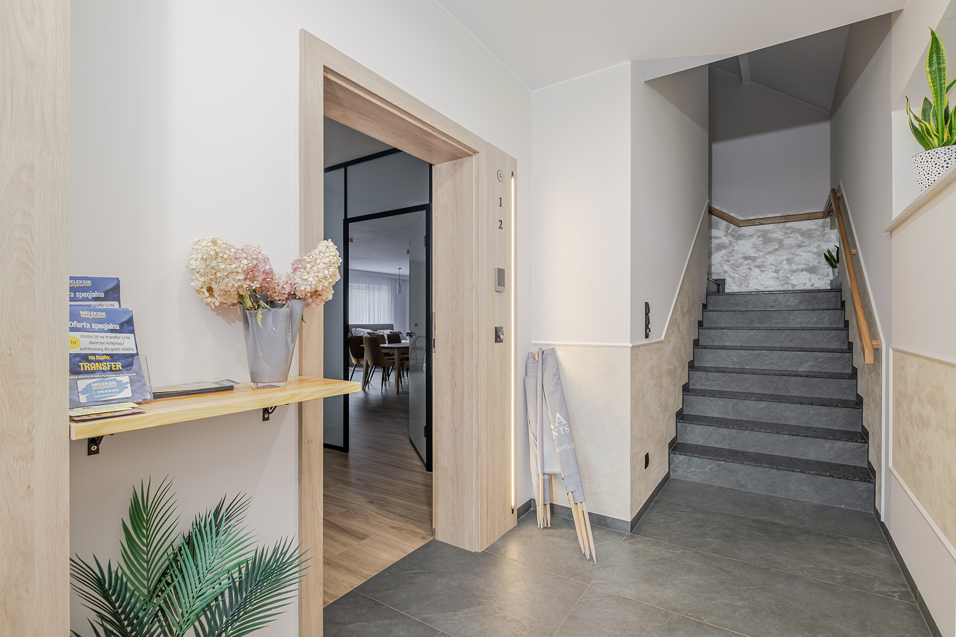 Na parterze i poddaszu łącznie siedem apartamentów. (każdy wykończony o wysokim standardzie z klimatyzacją)