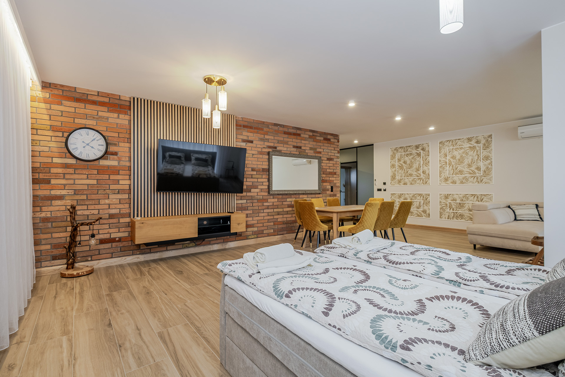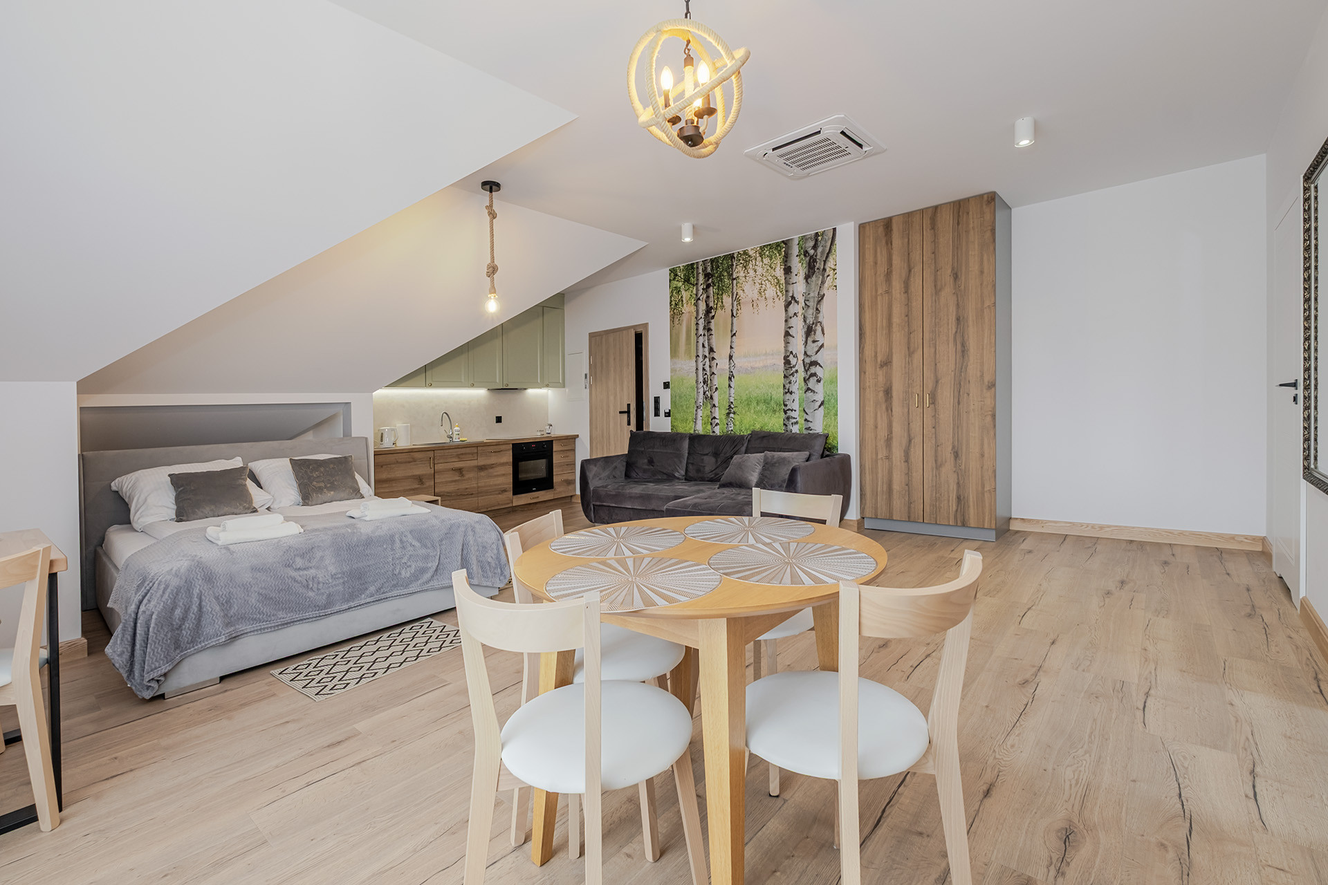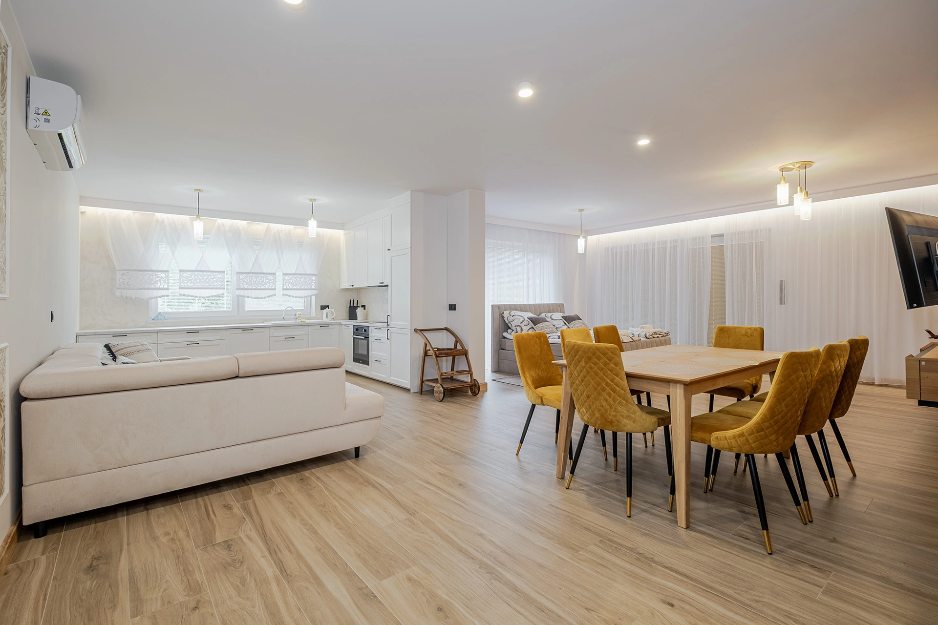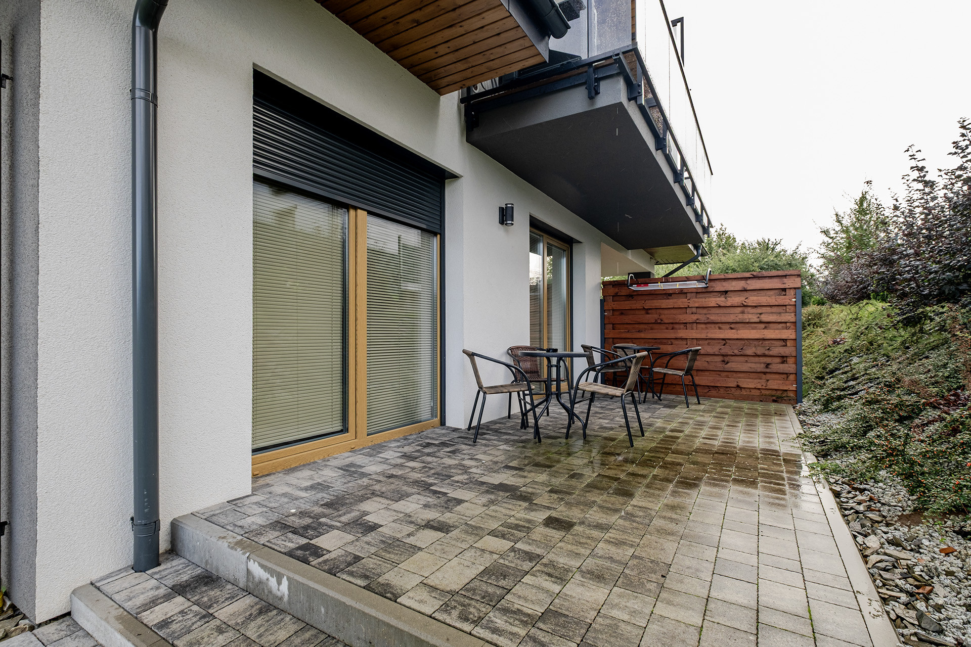 Na parterze i poddaszu łącznie siedem apartamentów. (każdy wykończony o wysokim standardzie z klimatyzacją)