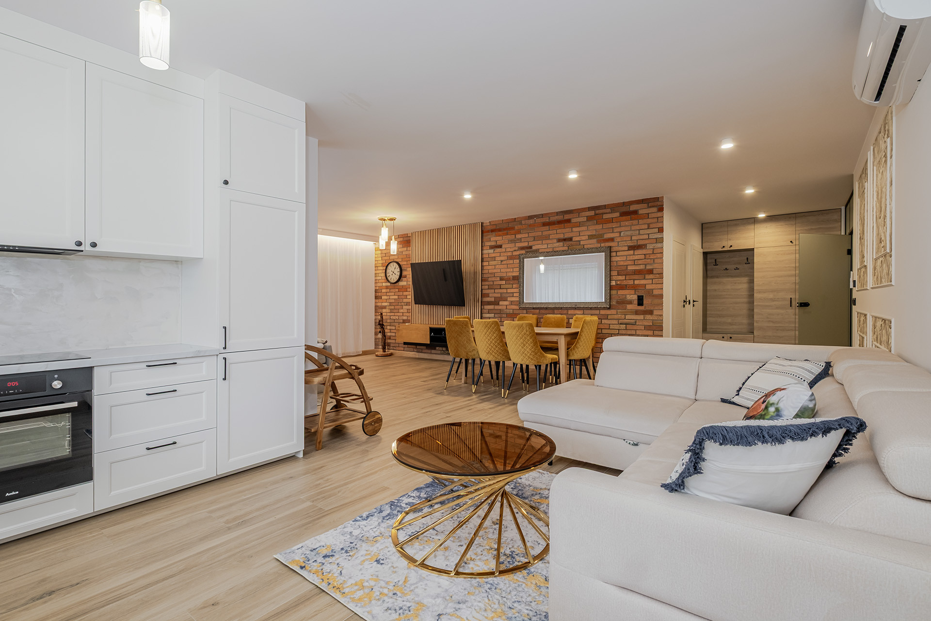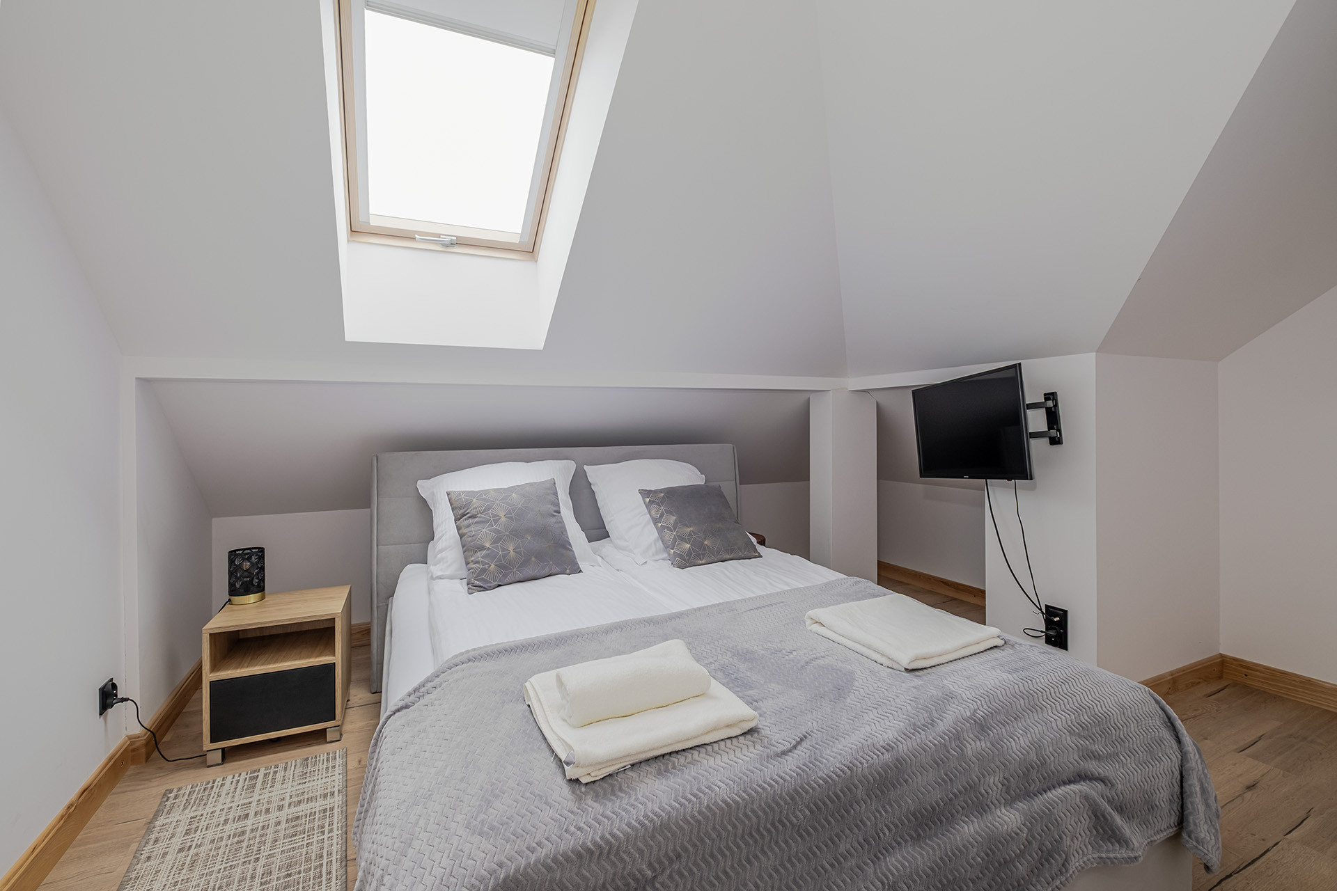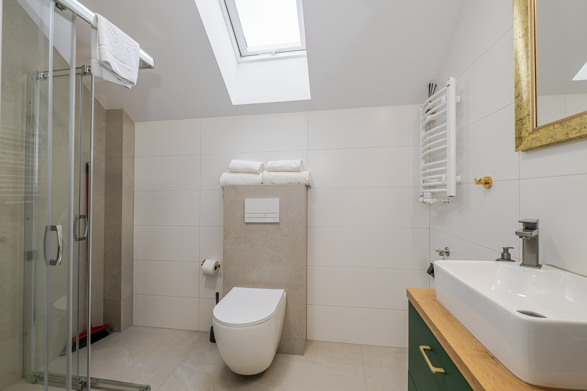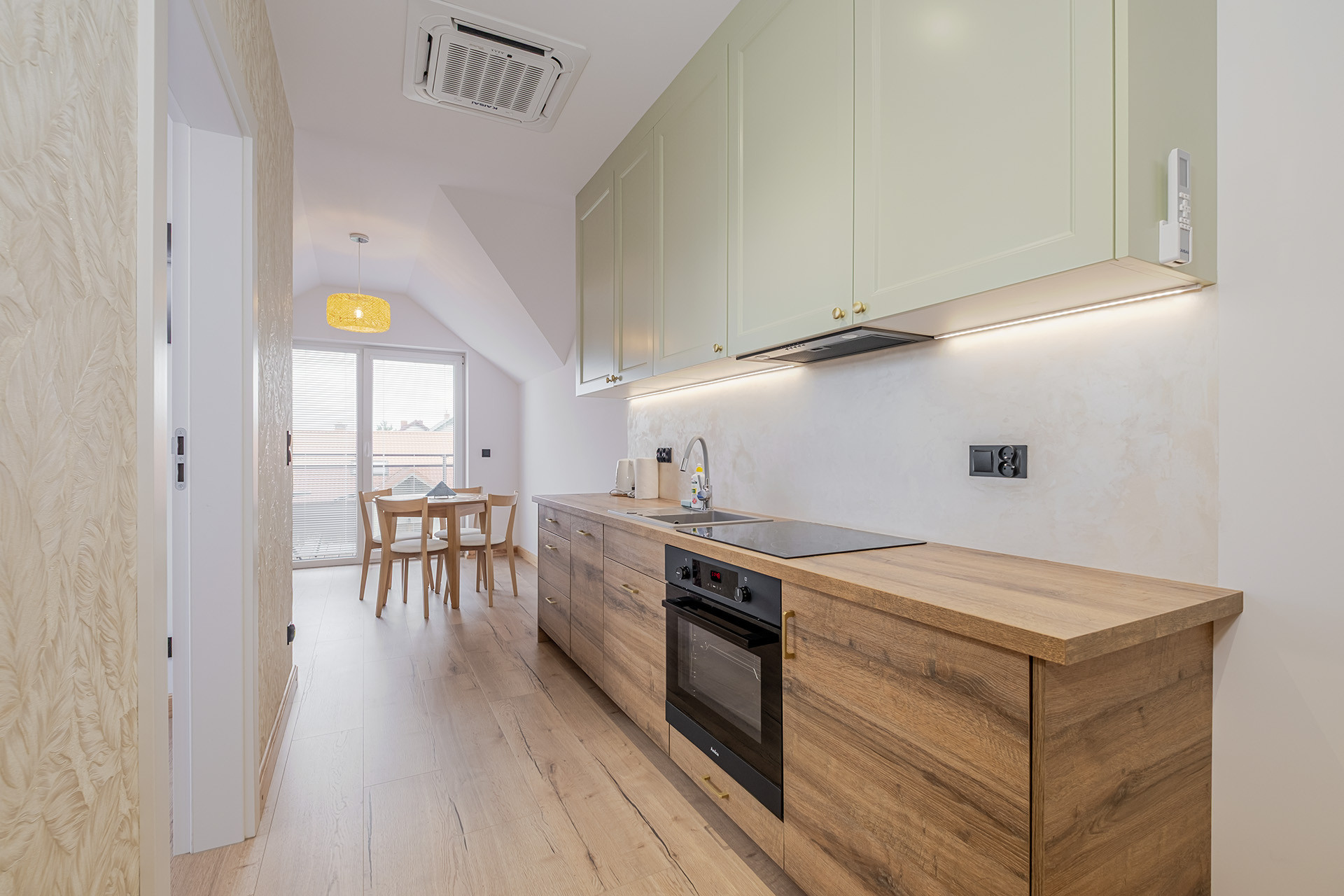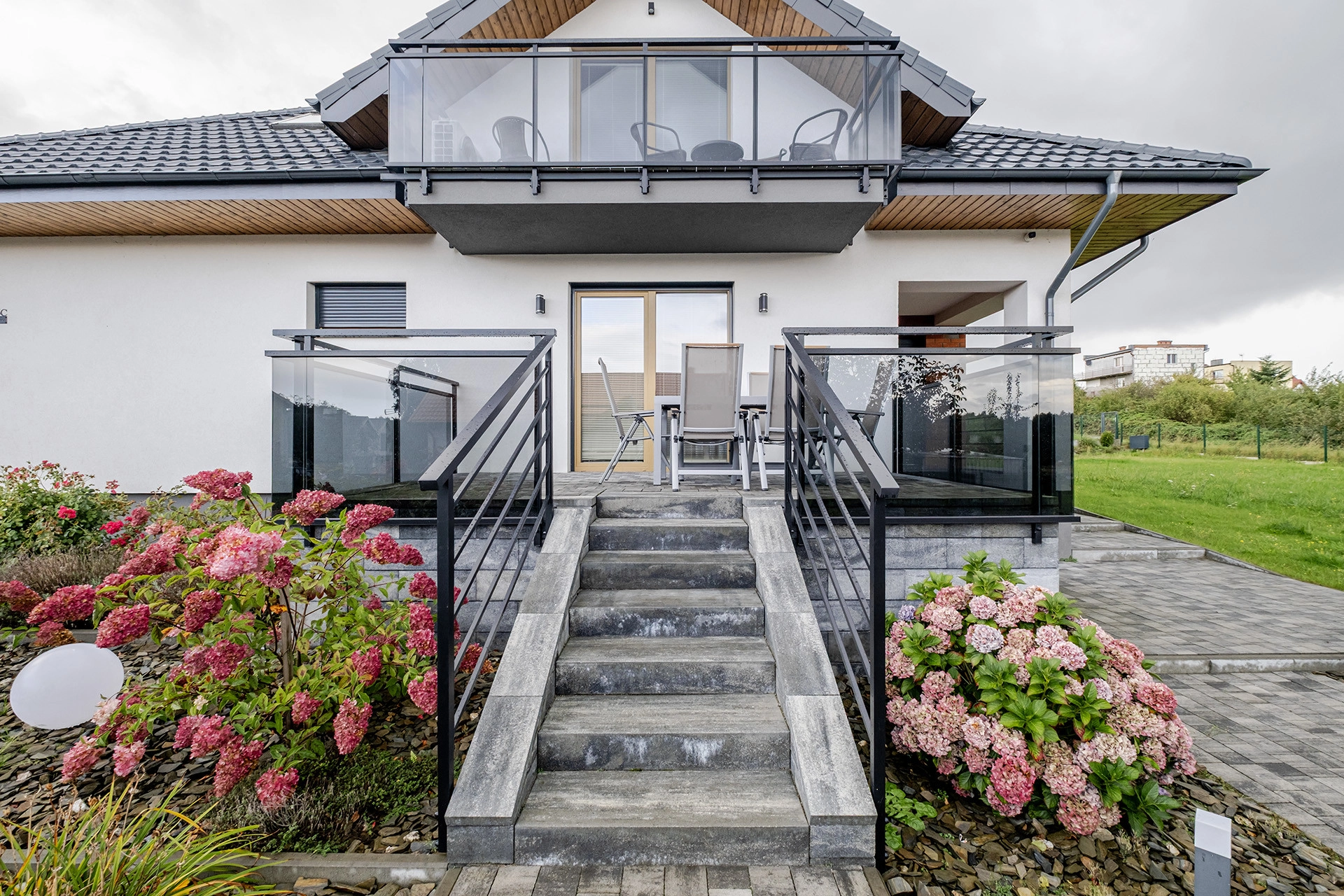 Na parterze i poddaszu łącznie siedem apartamentów. (każdy wykończony o wysokim standardzie z klimatyzacją)