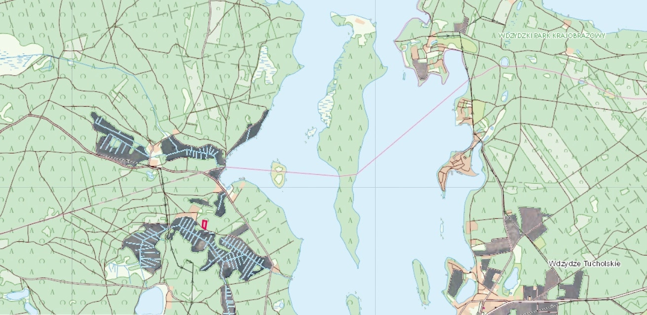 LOKALIZACJA: Działka zlokalizowana jest w miejscowości Wygoda, w powiecie kościerskim, w gminie Karsin, na zachodnim brzegu Jeziora Wdzydze, tuż przy Wdzydzkim Parku Krajobrazowym.