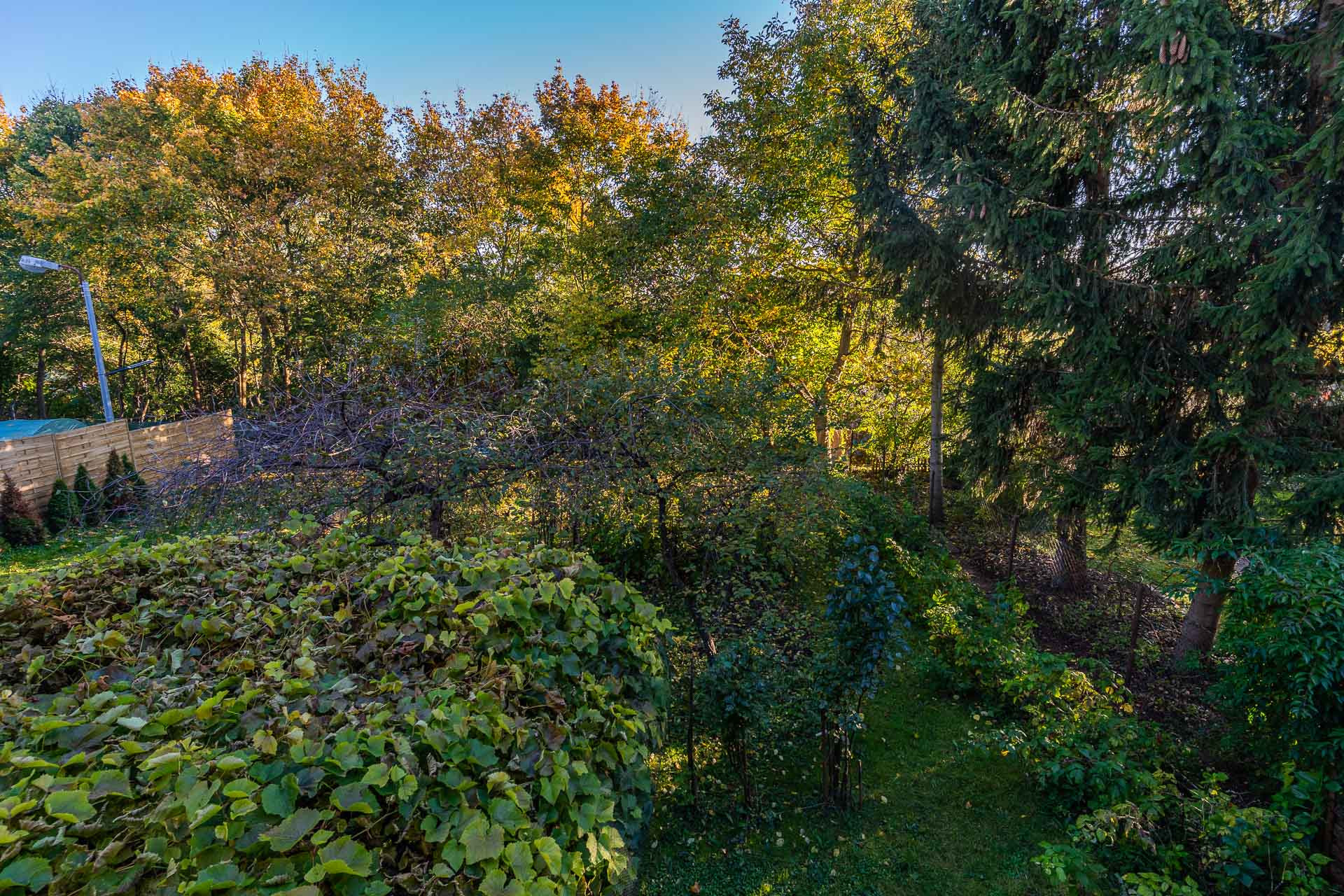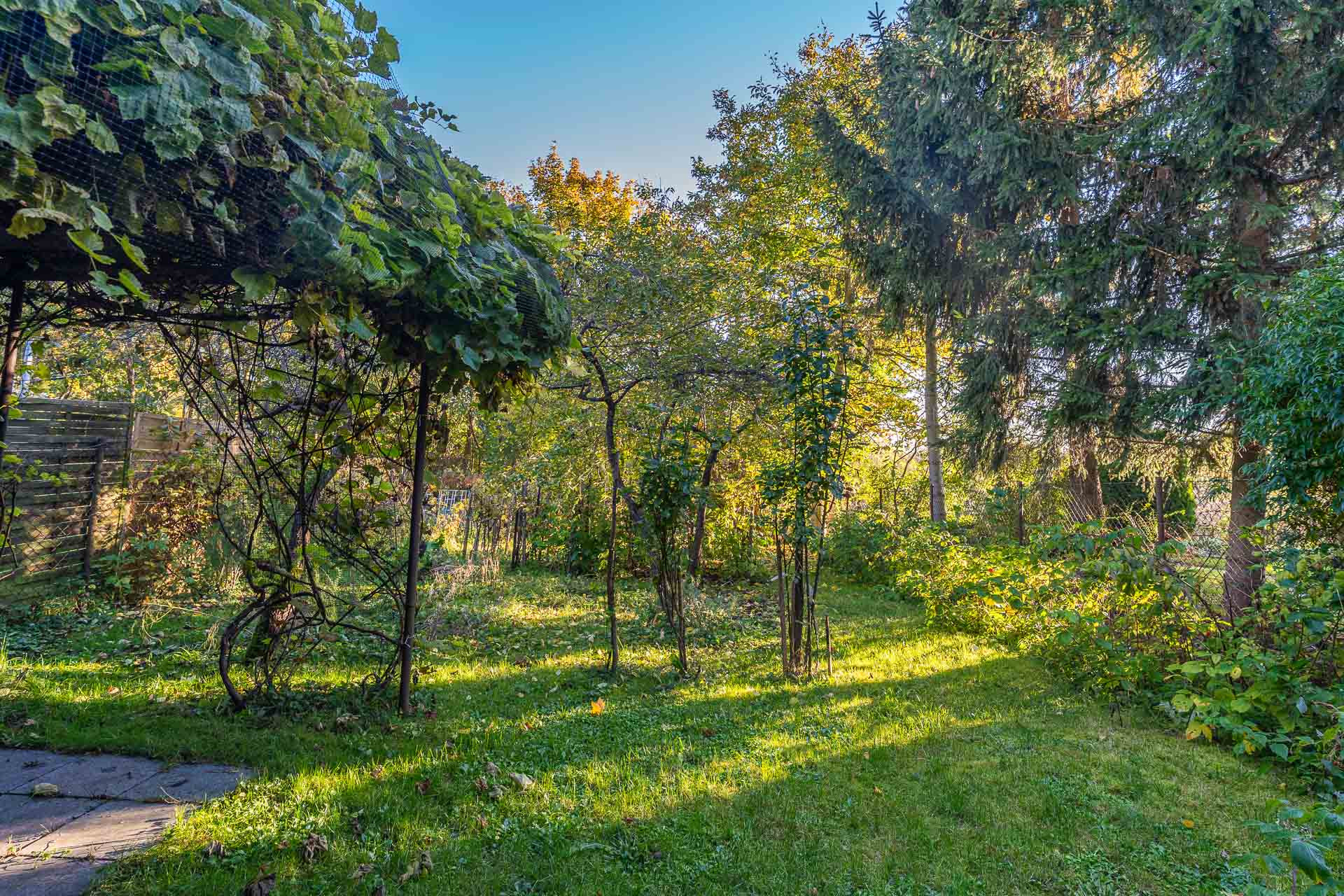 Jest posadowiony na działce w kształcie prostokąta, o powierzchni 242 m2. Ogród, w którym znajdują się liczne nasadzenia oraz krzewy i drzewa owocowe, powiększono o dodatkową przestrzeń ok. 100 m2 dzierżawioną od miasta oraz dzierżawioną drogę z ogrodu do ulicy ok. 141 m2.