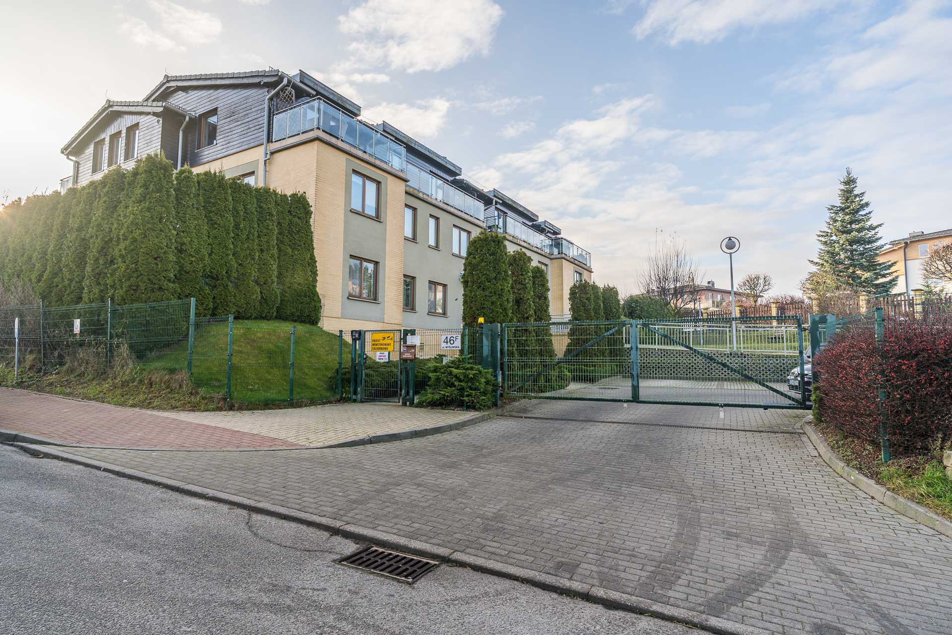 Mieszkanie usytuowane jest na 1. piętrze w 3-kondygnacyjnym budynku mieszkalnym z 2009 roku, wybudowanym przez renomowanego dewelopera INPRO. . Budynek znajduje się w bardzo dobrym stanie technicznym. Pod budynkiem zlokalizowane są prywatne miejsca postojowe, a wejście do klatki schodowej zabezpieczone jest domofonem. Teren osiedla jest zamknięty, a wjazd chroniony bramą. Dodatkowym atutem jest dostęp dla mieszkańców do strefy rekreacyjnej z siłownią oraz sauną, zlokalizowanej w budynku.