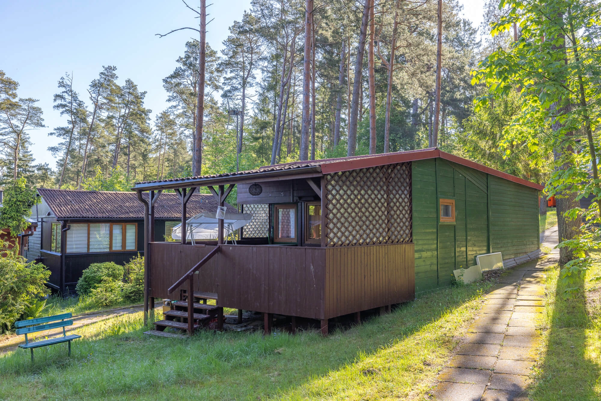 DOM: W zabudowie letniskowej znajdujący się w kompleksie domków (49 sztuk), tuż przy jeziorze Raduńskim. Nieruchomość o pow. użytkowej 45 m2. Domek posadowiony na działce o pow. ok. 385 m2.