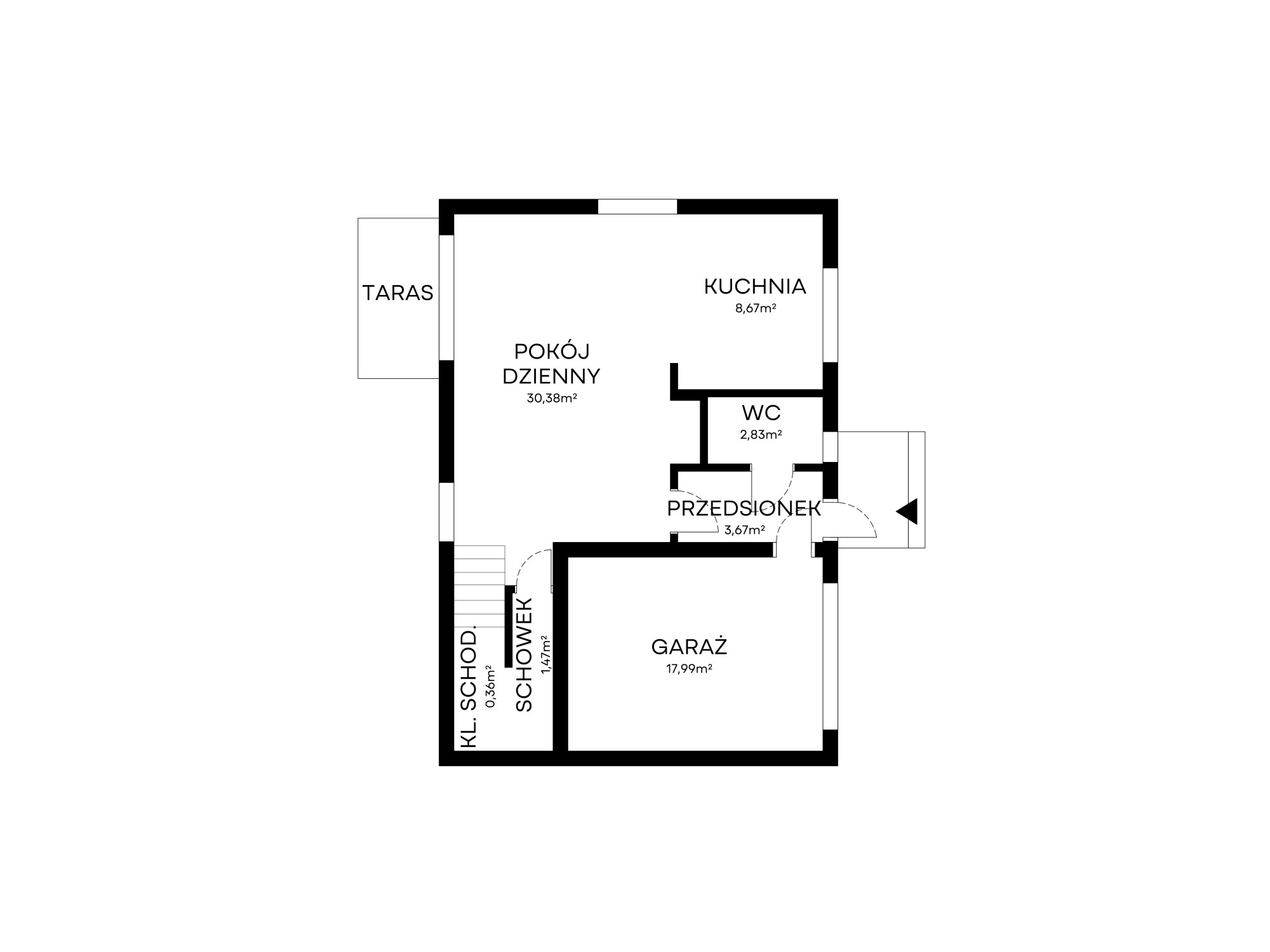 – garaż z bezpośrednim wejściem do domu 18 m²