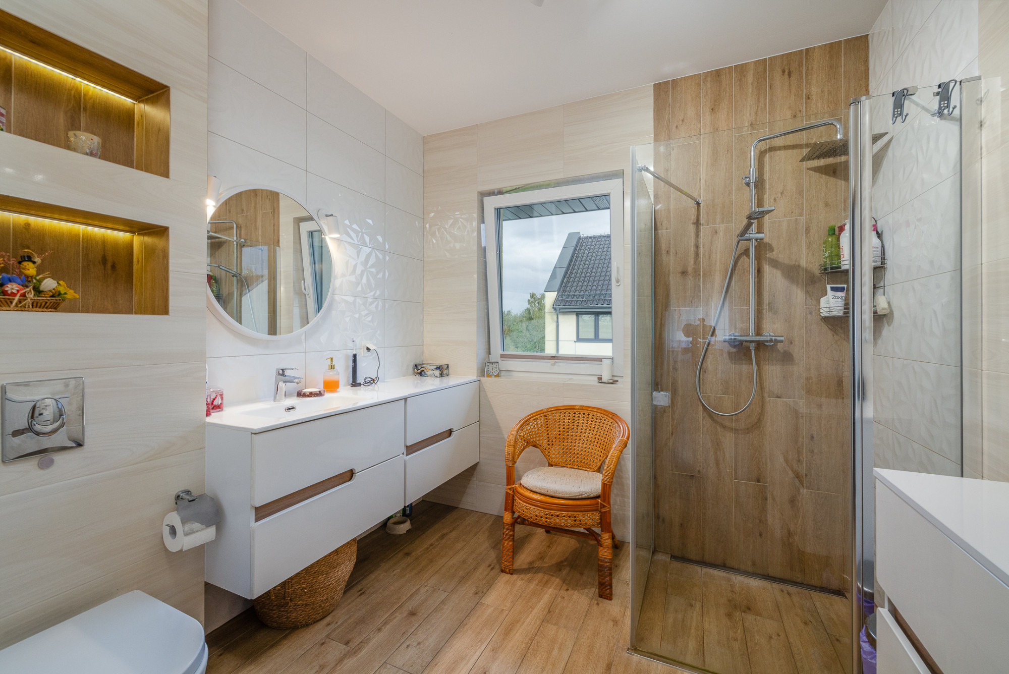 – ogrzewanie gazowe – nowoczesny system ogrzewania piecem dwufunkcyjnym, cały parter + łazienka na piętrze (ogrzewanie podłogowe)